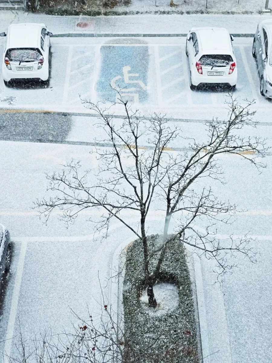 서행하는 차들과 천천히 걷는 사람들의 깊은 발자국이 눈에 선하다. 눈 온 후, 누군가 만들어 놓은 앙증맞은 눈곰이와 눈오리는 시린 발걸음을 쉬게하고 바쁜 하루의 순간 속에서 눈에 덮힌 잎과 솔방울, 고마운 이가 준 눈 위에 귤 하나. 눈사람을 만들고 싶은 작은 충동과 맞써 싸우며 눈 내리는 날에만 기억할 수 있는 소중한 순간들을 조금이나마 담아본 오늘.