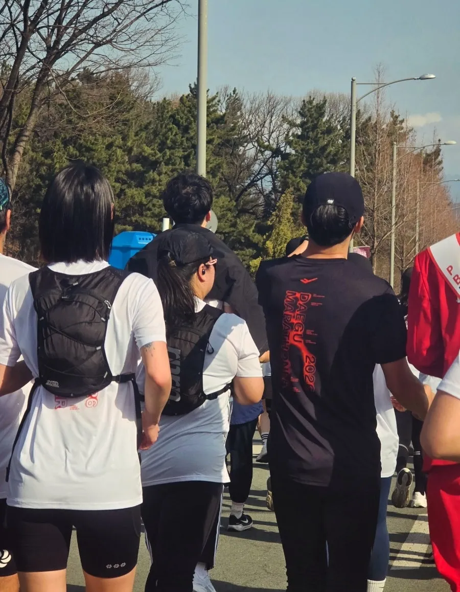 다시 떠올려보아도 일요일 아침은 기적같은 봄날이었다. 작년엔 한파같은 추위 속에 달렸지만 올해는 온몸에 송글한 땀이 맺힐듯한 온기 속에서 달렸다. 누군가는 나의 뒷 모습을 보고 어떤 생각을 했을까. 내 앞으로 달려가는 이들을 볼 때 나 자신을 믿고 전진하며 달리는 러너들의 열기와 열정이 놀랍고, 4만여명의 빽빽한 인파에도 우리는 문화시민다운 태도를 보여주었다. 속도에 연연하지 않고 매달리지 않으며 현재의 내가 포기하지 않고 전진하는 그 모습에 매순간 감격스러웠다. 울컥하는 느낌, 몽글해지는 마음, 따뜻한 온기와 대화, 본인 페이스에 맞게 달리면 된다. 그렇게 내가 바라본 이름모를 그대들의 시선을 보며 느꼈다. 포기할 수 없는 달리는 삶의 가치와 의미를 깨닫게 된다. 그렇게도 여유있게 속도에 연연하지 앉고 달리는 러너들의 뒷 모습을 담았다. 숨이 차고 힘들지만 결승을 향해 달리는 삶, 그 자체로 의미가 있다. 그렇게 수없이 많은 러너들에게 대구마라톤은 그 자체로 축복이고 자존심이다.