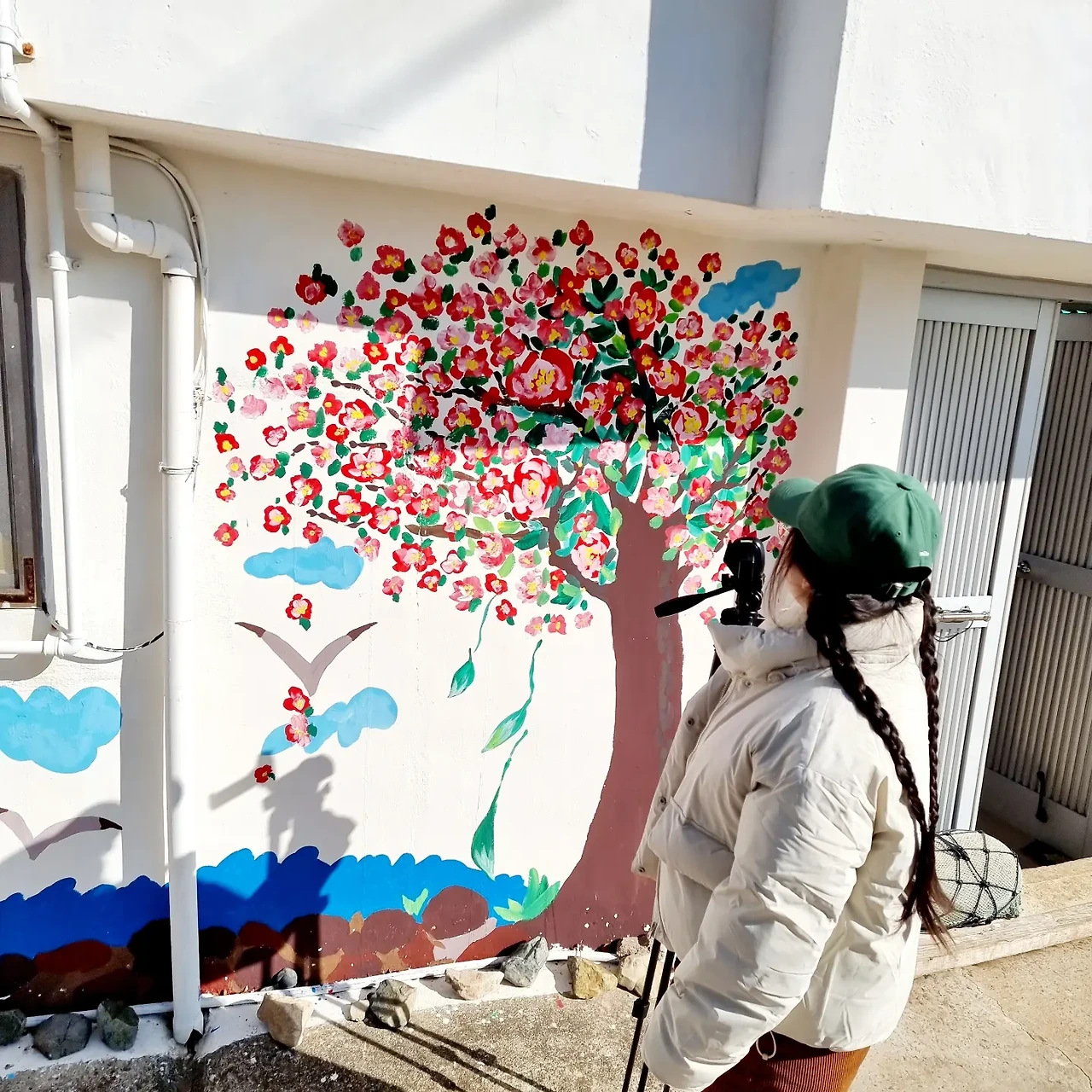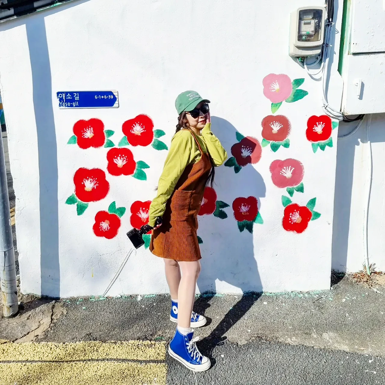 그리고 벽에 그려진 꽃도 마냥 예뻐서 걸음을 멈추게 한다.