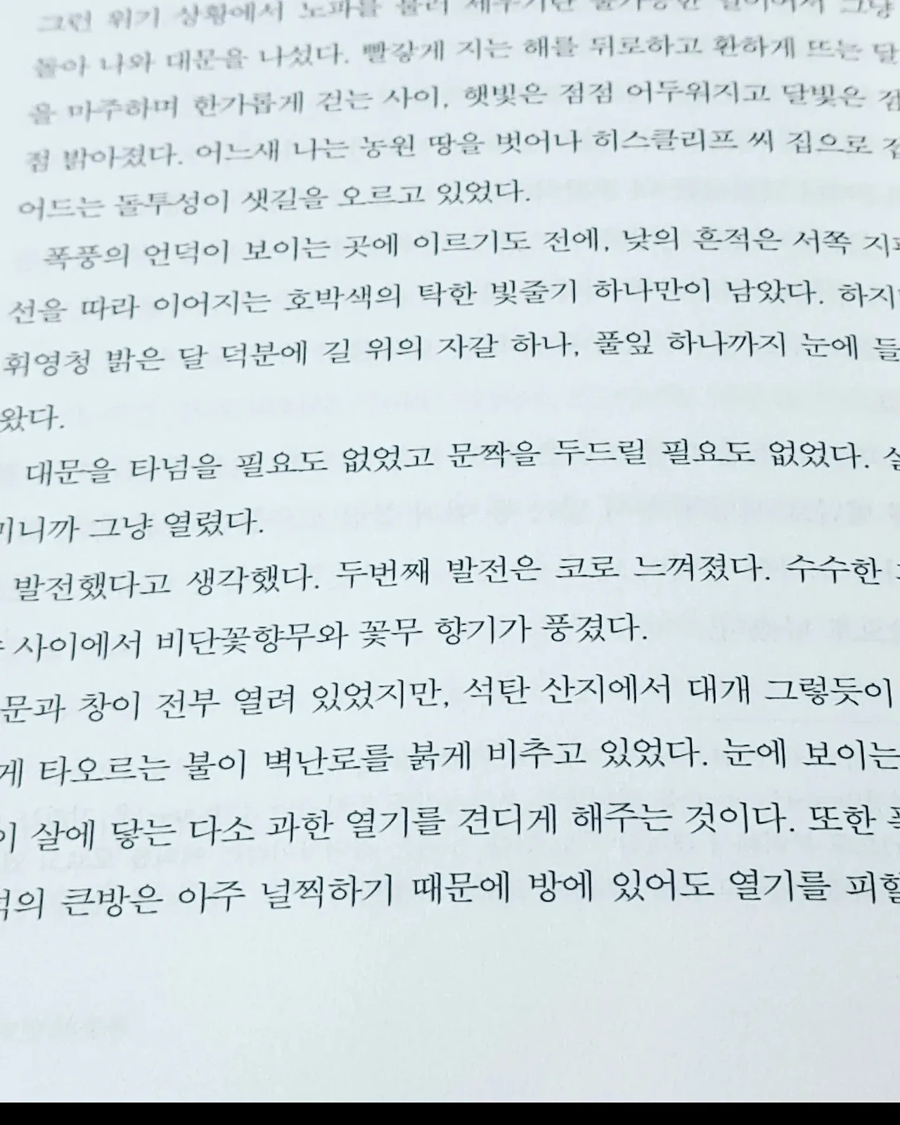 - 눈에 보이는 아늑함이 살에 닿는 다소 과한 열기를 견디게 해주는 것이다. 또한 폭풍의 언덕의 큰방은 아주 널찍하기 때문에 방에 있어도 열기를 피할 곳이 많았다. - P 476