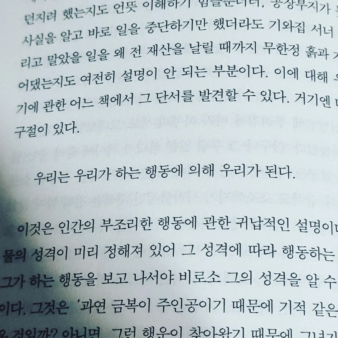 - '금복은 늪지대에 벽돌공장을 지음으로써 무모하고 어리석은 여자가 되었다.' '우리는 우리가 하는 행동에 의해 우리가 된다.'