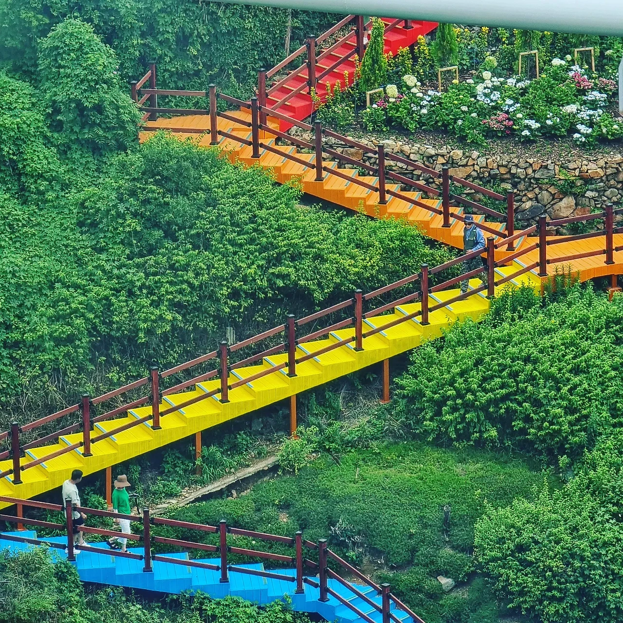 칠월이 시작 되었고, 바다의 계절이다. 자욱한 안개 속에서도 바다의 깊고 푸름은 선명하게 남아있다. 싱그러운 나뭇잎들이 무지개 계단을 빛나게 한다. 바닷가의 알록달록 색깔 지붕은 마음을 화사하게 만든다. 동해 바다를 지키는 묵호등대가 어른스럽게 느껴진다. 그렇게 칠월은 바다스럽다. 참 행복한 여름이야.