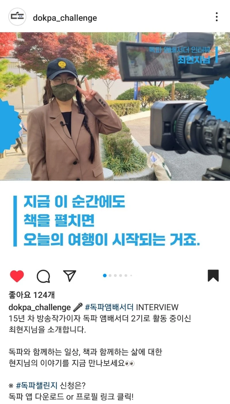 저에게 책을 읽는다는 건 오늘을 살아가는 것과 같아요. 스스로 경험할 수 없는 또 하나의 삶을 배우고 터득하게 하죠. 간단한 문장으로 표현한다면, ‘독서란, 여행이다.’ 지금 이 순간에도 책을 펼치면 오늘의 여행이 시작되는 거예요. 요즘은 다들 바빠서 책 읽는 시간이 없잖아요? 책을 읽는다는 건 시간적, 심적 여유를 가지자고 마음먹고 행동하는 거니까 그 순간만큼은 혼자 여행을 떠난다고 생각해요.