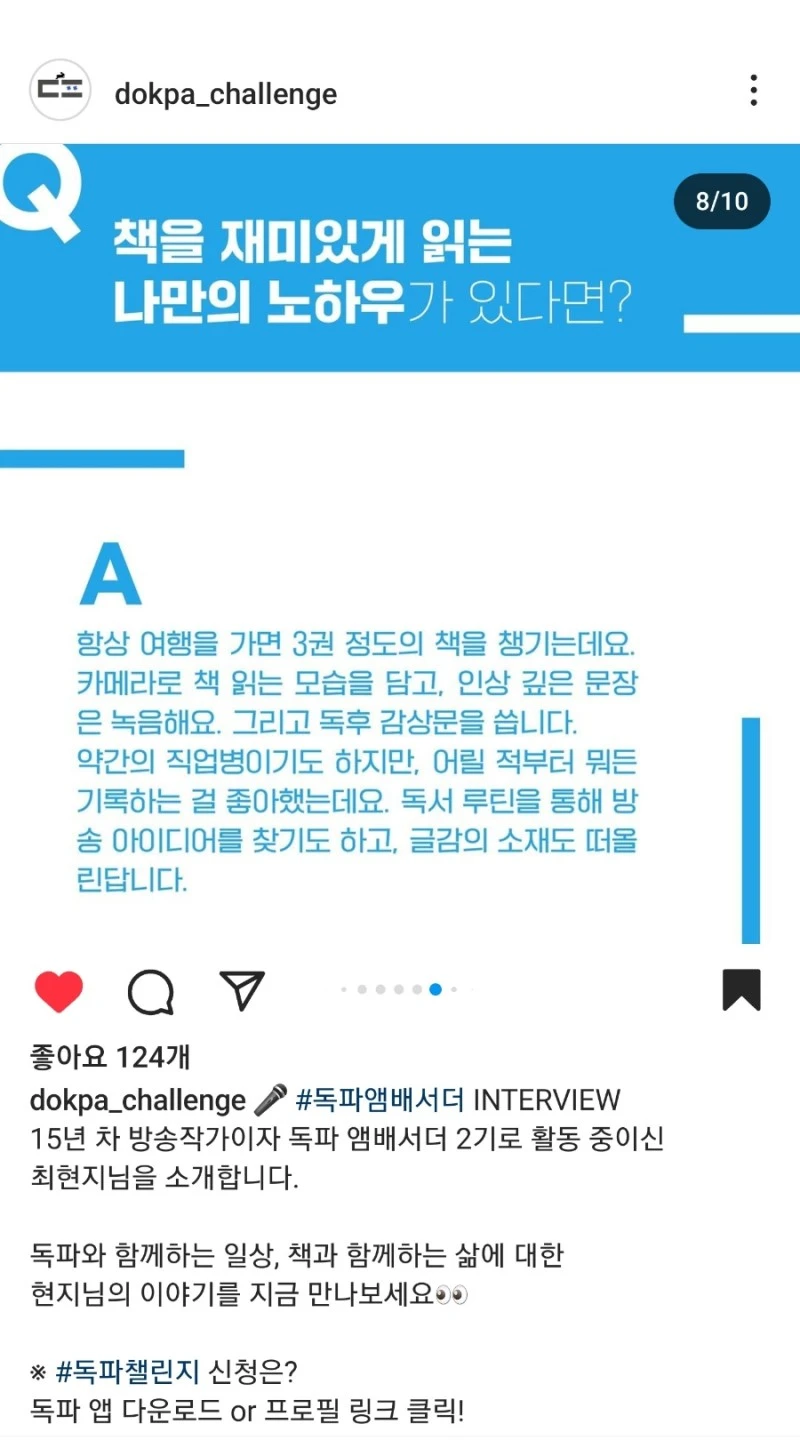 6. 지금도 독파에서는 다양한 챌린지에 대한 신청자를 모집하고 있습니다. 가장 기대되는 챌린지가 있나요? (3-4줄)
