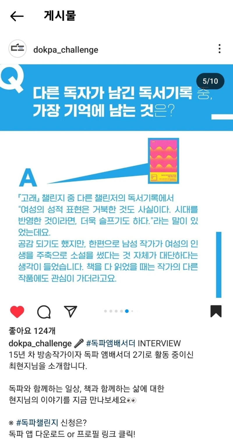 2. 최근에 어떤 독파 챌린지에 참여하셨나요? 간략한 리뷰도 함께 적어주세요. (4-5줄)