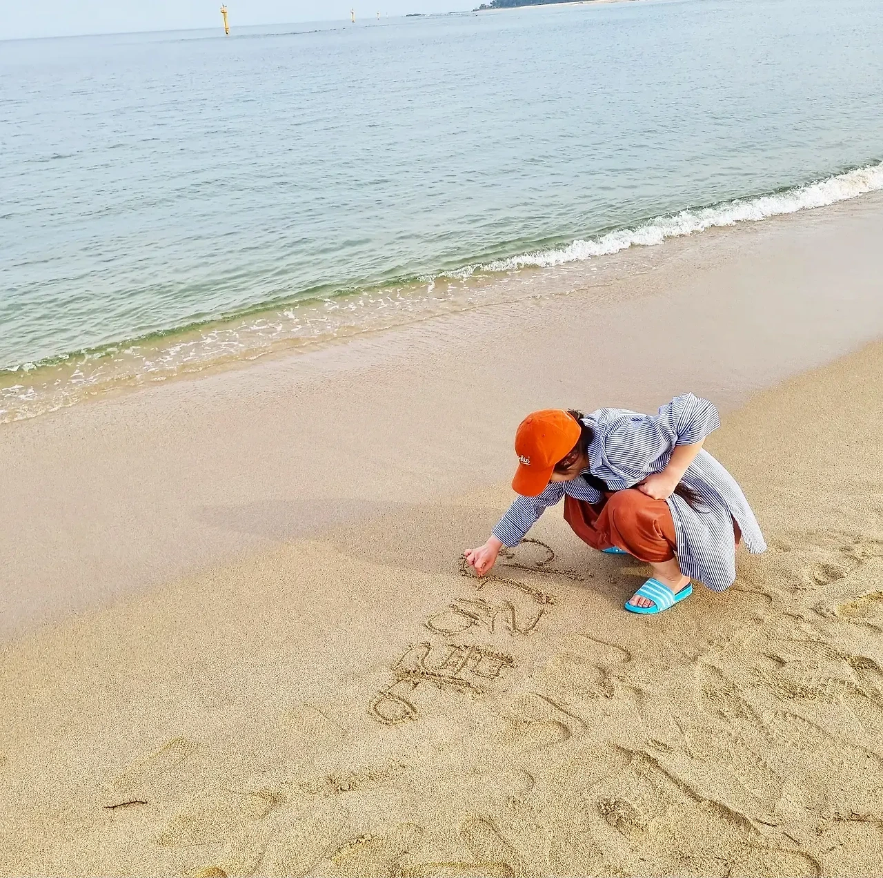다시 모래사장에다