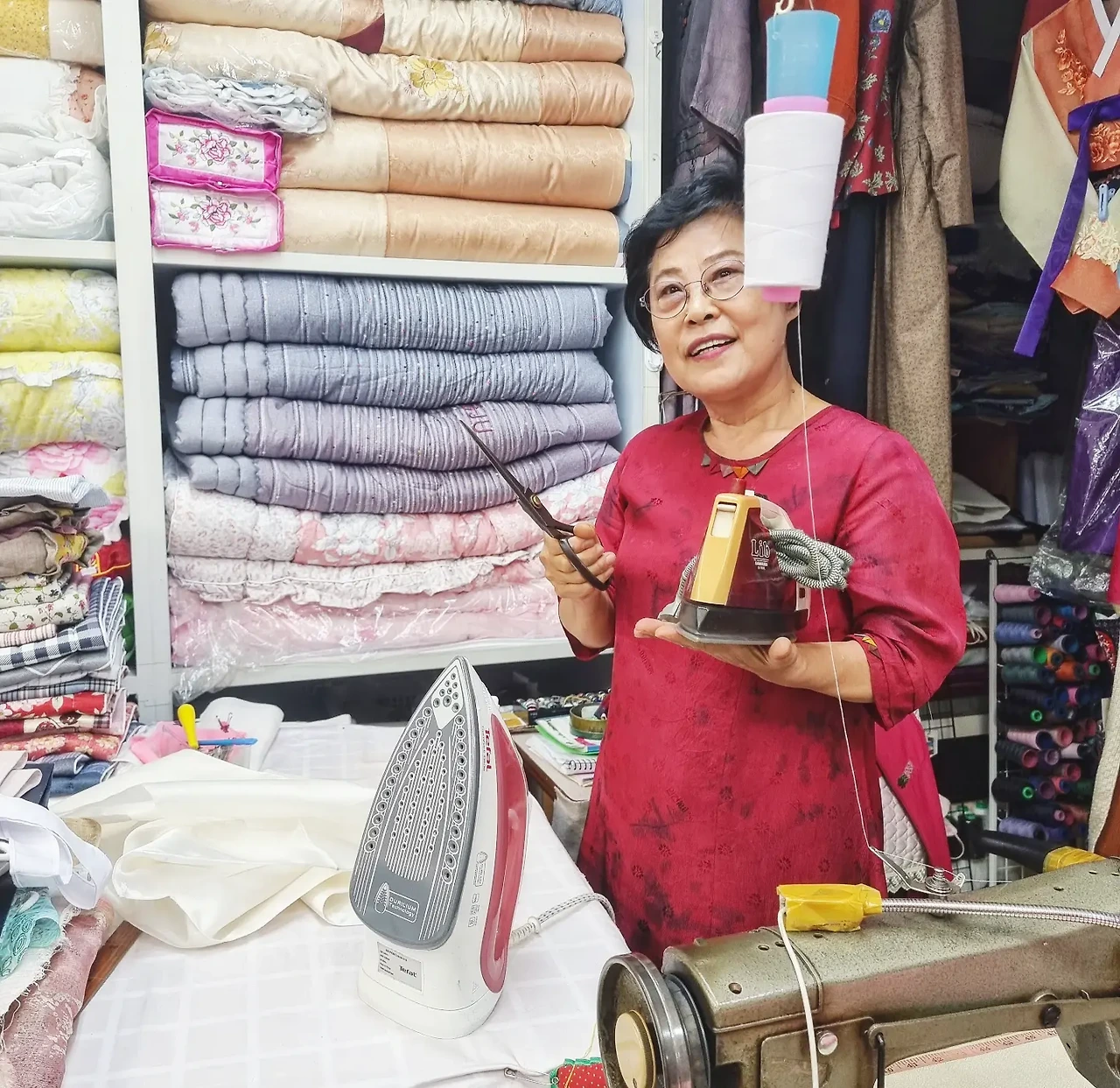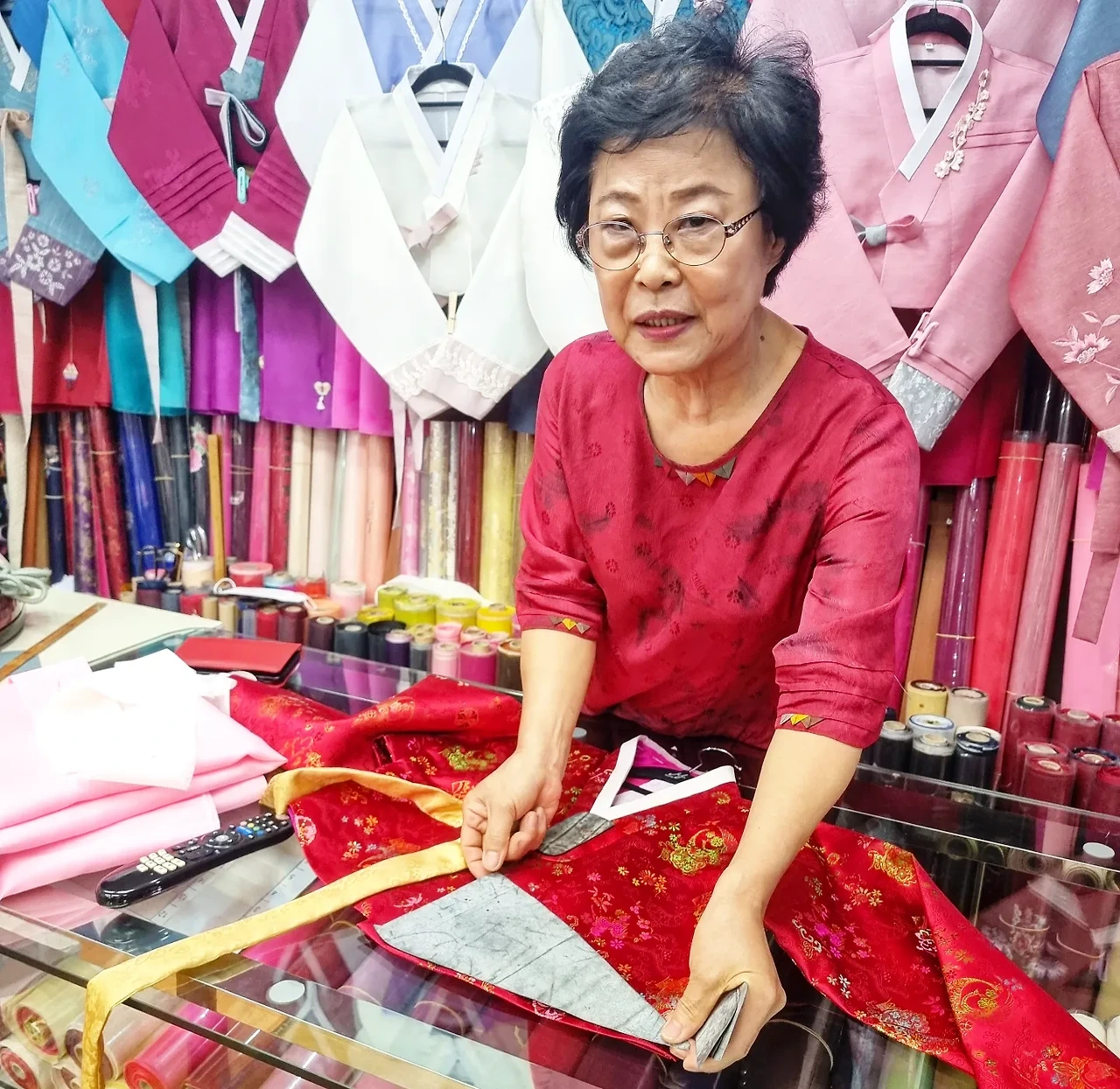 - '저는 바느질 하나는 정말 스스로도 최고라고 생각해요. 50년 넘게 해온 일이니까요. 지금도 매일 5시간 정도는 한복 바느질을 해요. 제가 가지고 있는 재봉틀, 가위, 옷감 만드는 도구들도 저랑 같이 나이를 먹은 제 인생에서 가장 중요한 벗들이라고 생각해요. 한복은 제가 스스로 먹고 살기위해서 선택한 직업이지만, 한복을 만난 건 제게 천운이라고 생각합니다. 제가 잘할 수 있고, 좋아할 수 있는 일을 오래 할 수 있어서 전 자식들에게 물려줄 생각도 없어요. 제가 가위질을 할 수 있는 그날까지 바느질을 계속 할 겁니다.' | 권영숙 님 (단산혼수방 대표) int 중