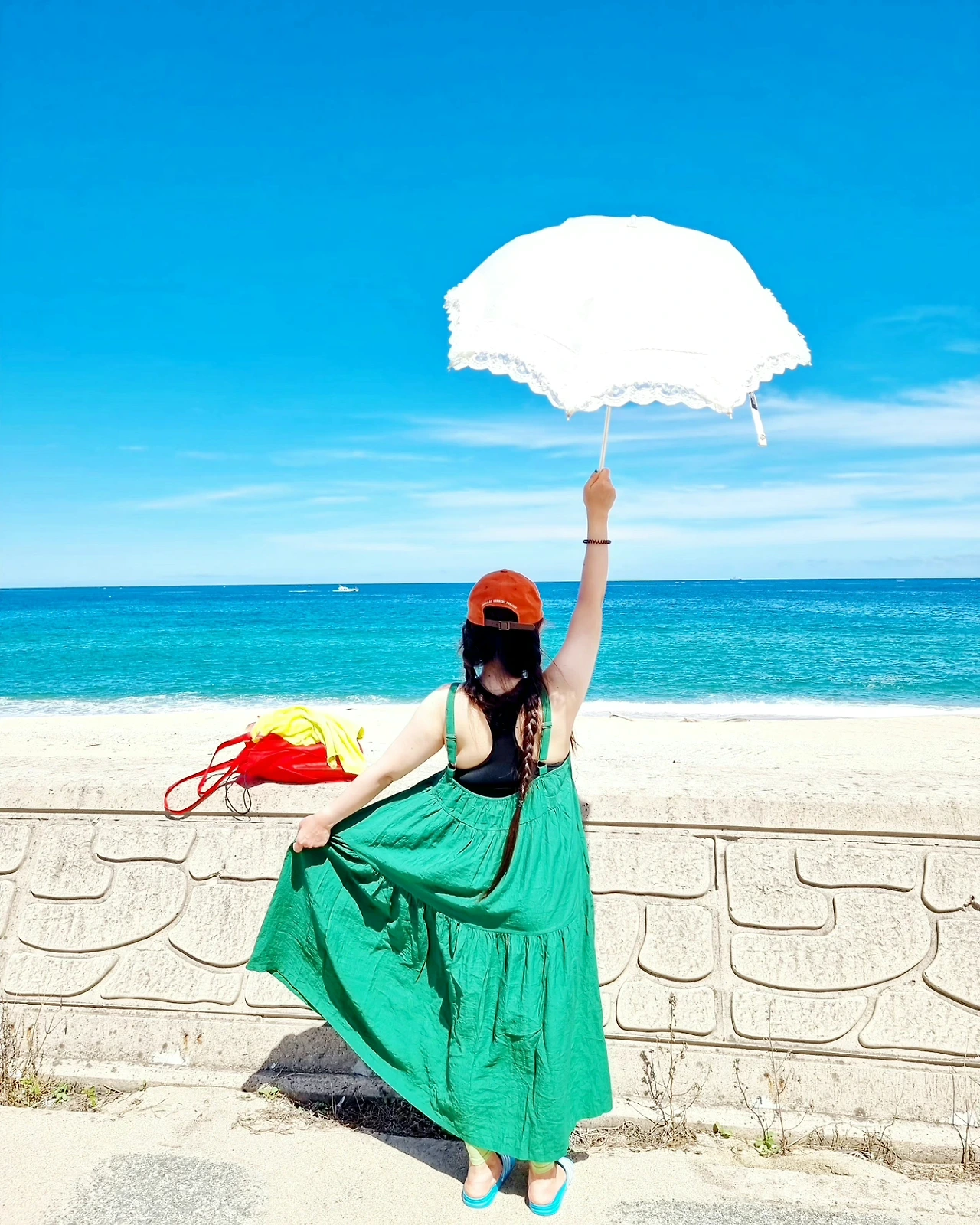여름 바다의 기억은 사라질듯 사라지지 않는다. 뜨겁고, 혹은 파랗고, 혹은 차갑고, 혹은 쨍해서 흐릿함 없이 선명한 순간들로 채워진다. 그녀의 뒷모습으로 보이지 않는 표정을 예측할 수 있는건 자연 그대로의 모습도 그림같은 바다의 한 장면에서 유추할 수 있다. 환하게 웃고, 멍하게 바다를 바라보며 감탄했을 것이고, 곧바로 푸른 바다를 향해 달려갔을 거야. 뜨겁고 쨍한 태양을 만나 그녀의 몸도 마음도 뜨겁게 타올라 찬 바다에 풍덩하고 뛰어들었을거야. 여름은 참 뜨겁고, 사람의 마음도 뜨겁게 해서 좋아.