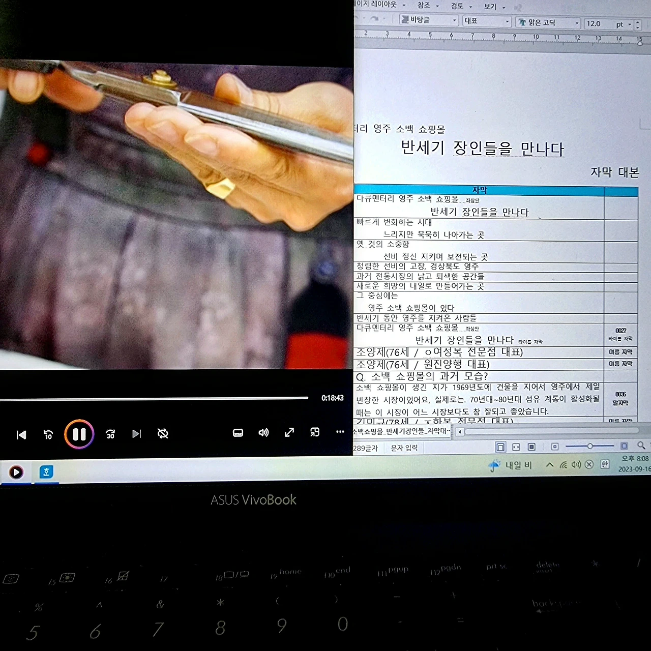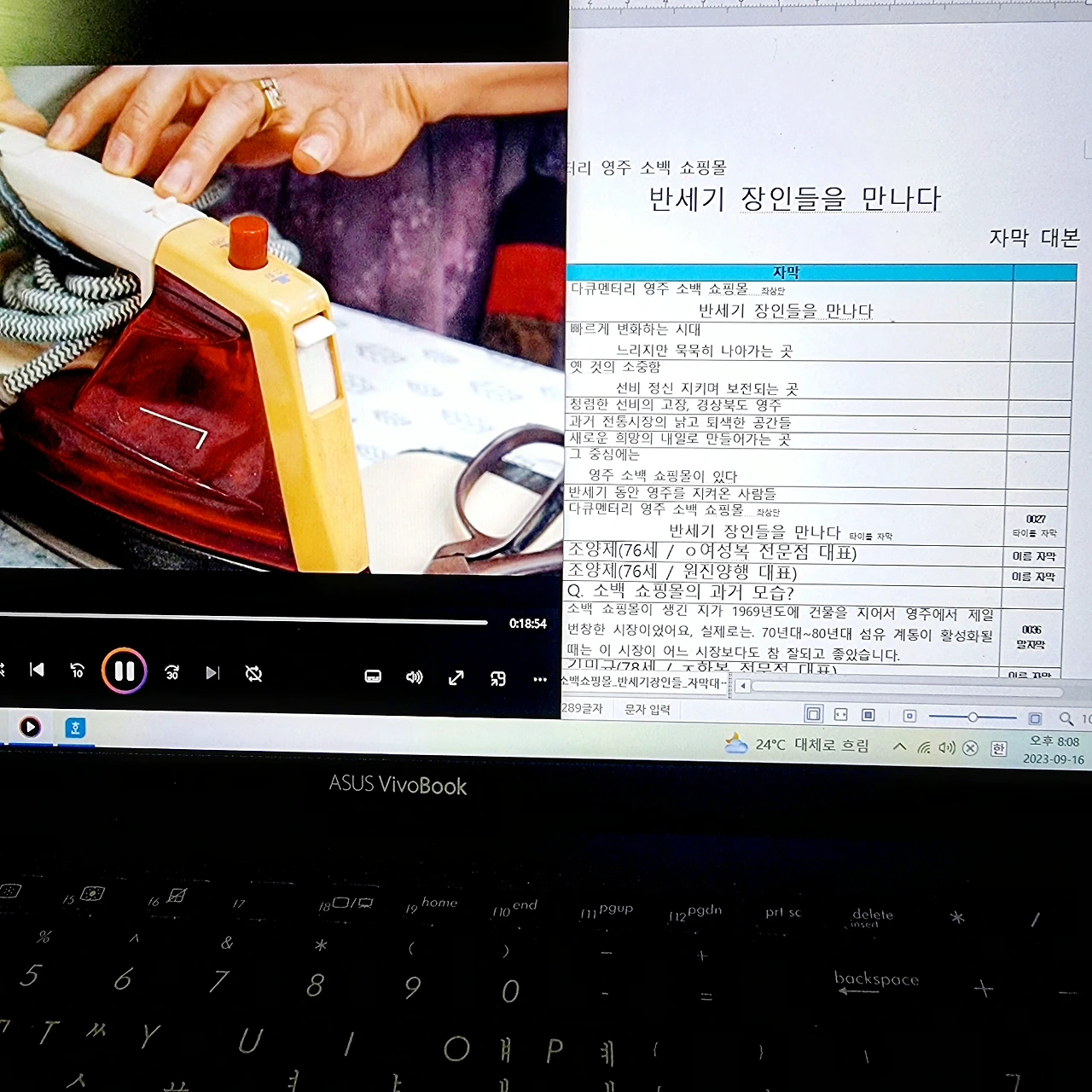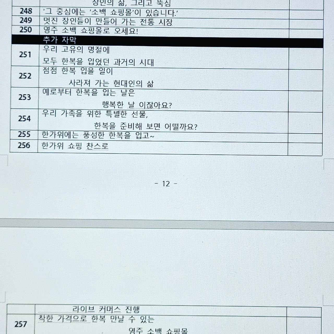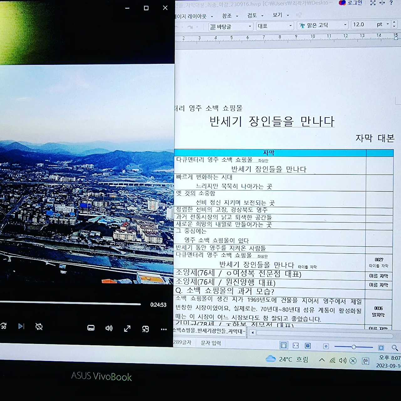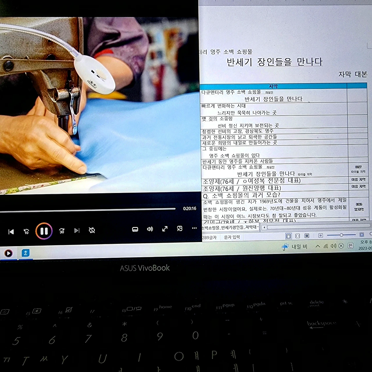 #방송 #다큐멘터리 #자막 #대본 #마감 #전통시장 #영주 #소백쇼핑몰 #반세기 #한복을만드는사람들 #장인의삶 #함께해주셔서감사합니다 #더도말고덜도말고한가위만같아라
