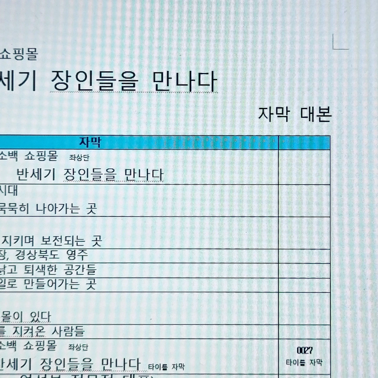 다큐 [영주 반세기 장인을 만나다] 자막 마감