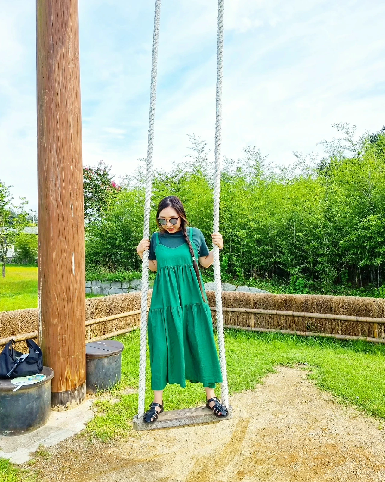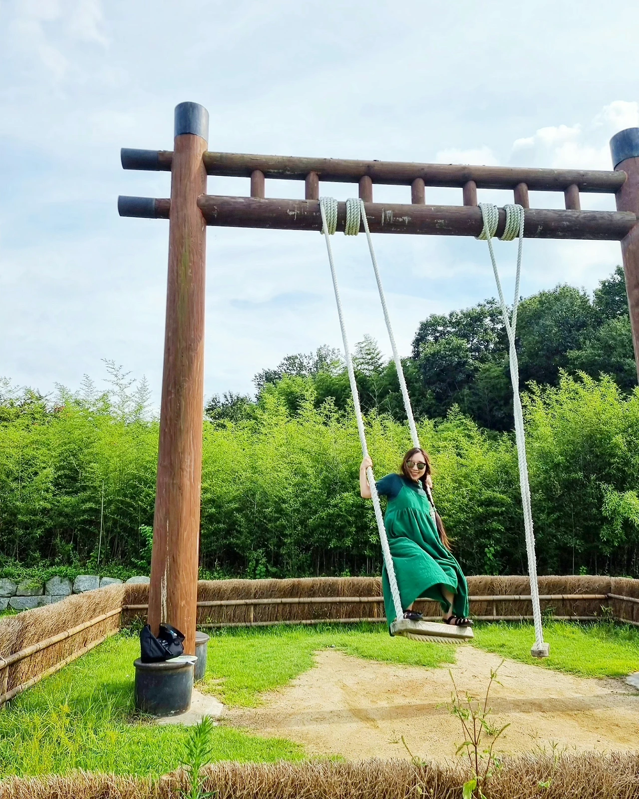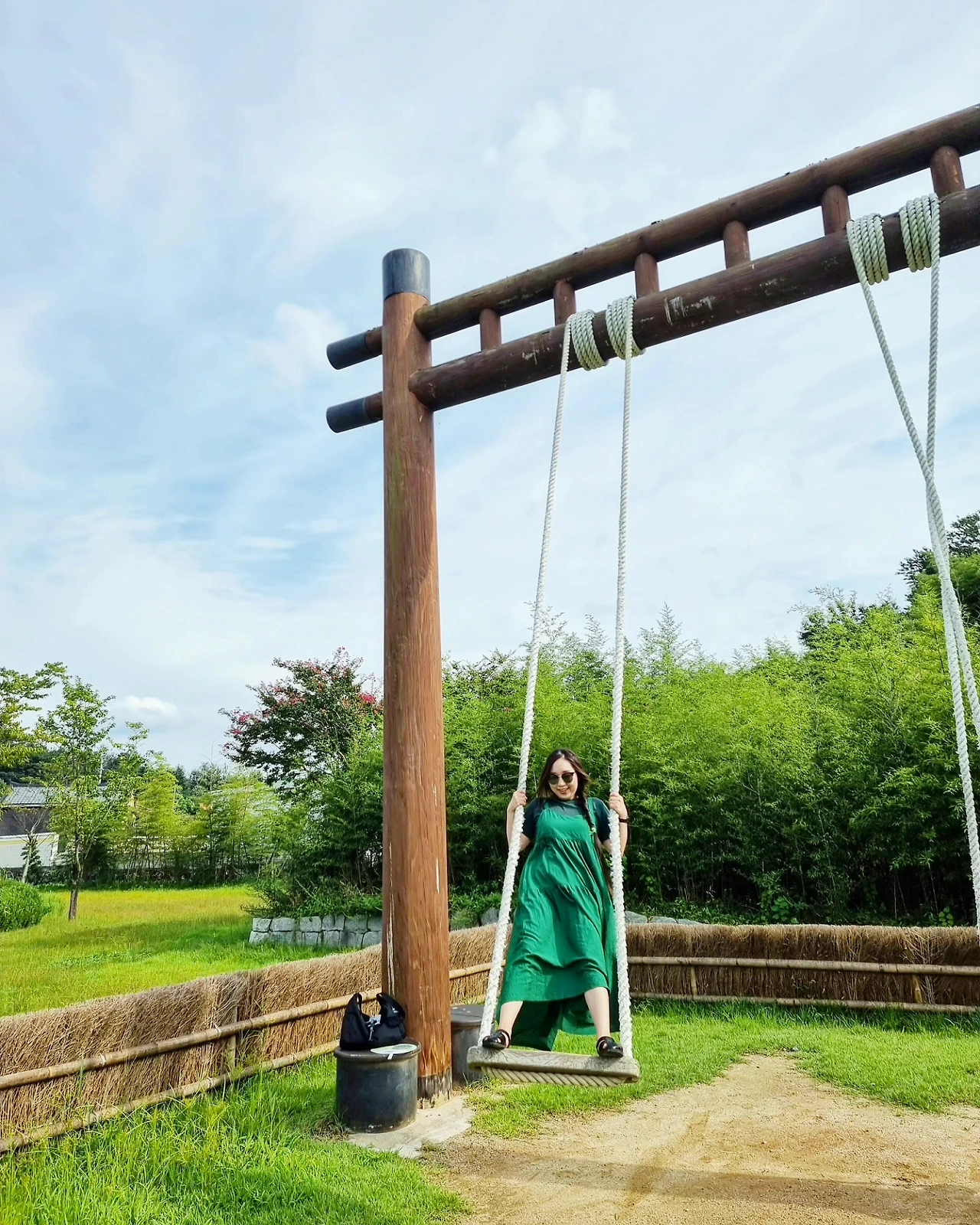 - 곧고 푸른 대나무 숲길을 걷다가 발견한 나무 그네를 탄다. 댕기머리를 하고 그네를 타면 조선 시대로 갈 수 있지 않을까 즐거운 상상을 한다. 이것이 바로 댕기머리에 힘인가.