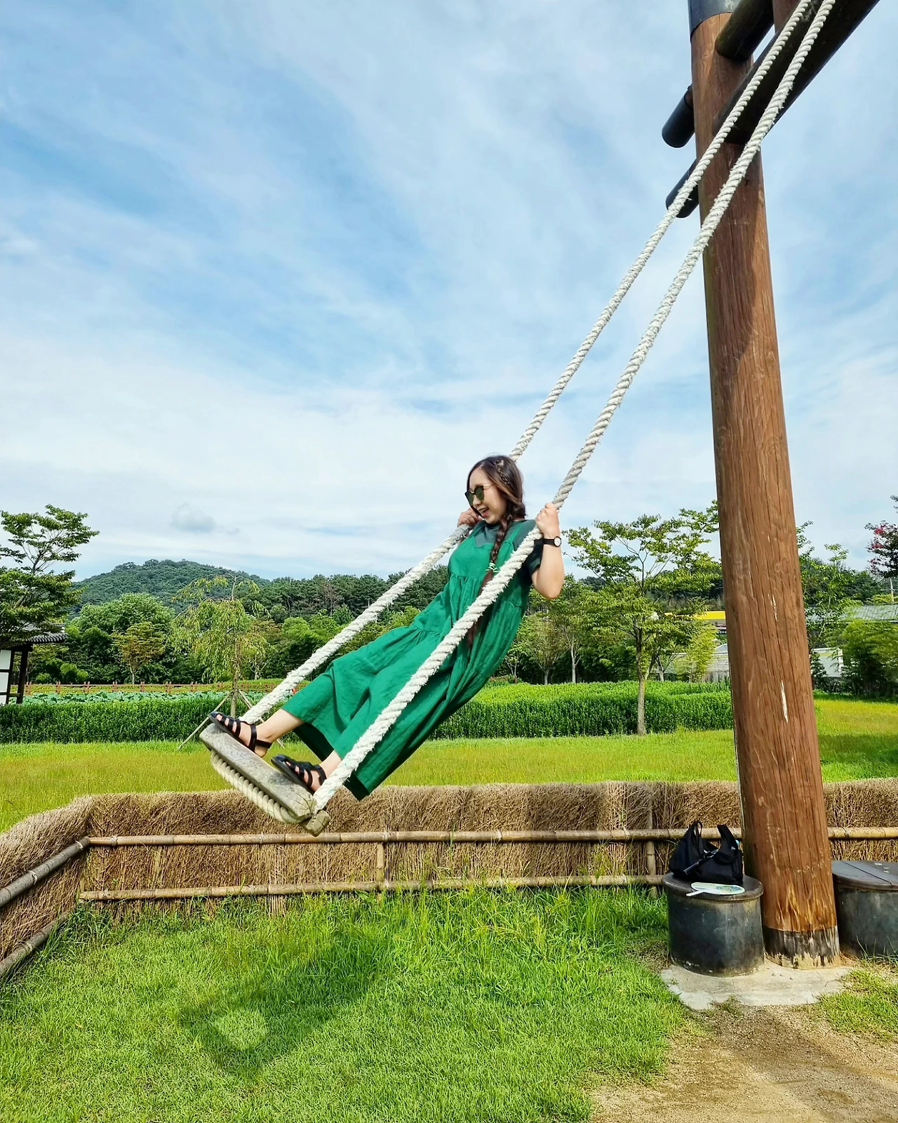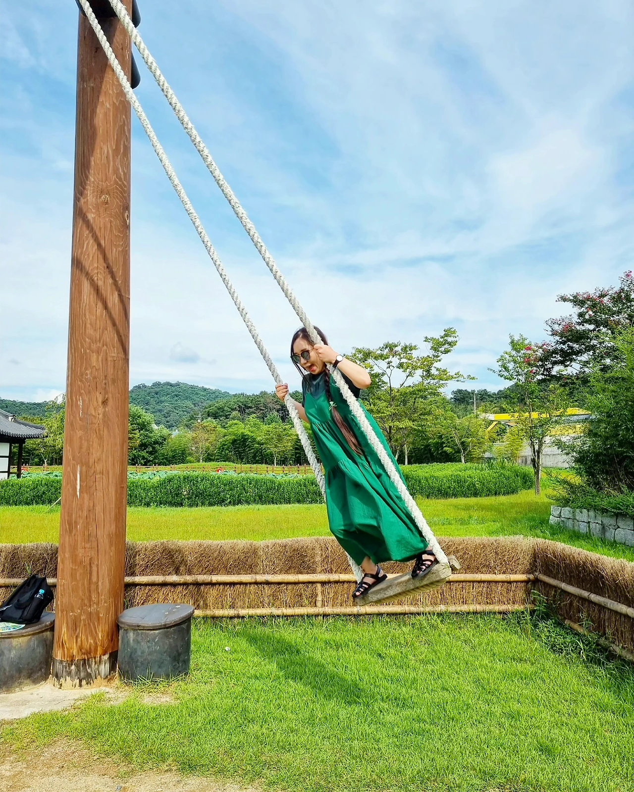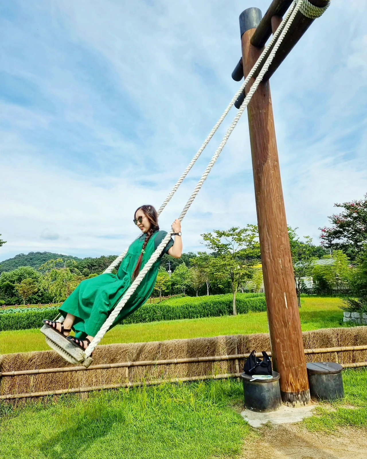 - 곧고 푸른 대나무 숲길을 걷다가 발견한 나무 그네를 탄다. 댕기머리를 하고 그네를 타면 조선 시대로 갈 수 있지 않을까 즐거운 상상을 한다. 이것이 바로 댕기머리에 힘인가.