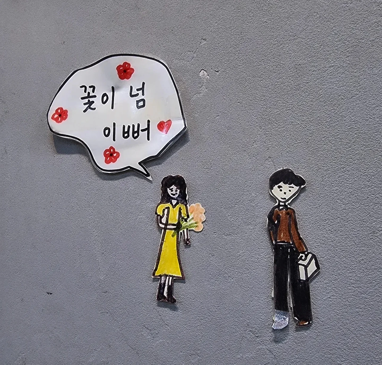 - '꽃이 넘 이뻐.' = '꽃이 참 예뻐.' 막창 고기집에서 발견한 문구다. 우리나라는 표준어 외에 지역마다 쓰는 방언(사투리)가 있는데 말투, 속도, 억양이 다양하고 개성있는 것들이 많다.그 중에서도 외모가 아름다운 사람을 보고 ‘이쁘다’라고 말하면 틀린 표현이라고 ‘예쁘다’를 쓰라는 경우가 있는데 2015년에 복수 표준어로 인정되었기 때문에 이제는 둘 다 사용할 수 있는데, 이쁘다는 예쁘다의 서울 사투리 라고.(고기 먹다가 국문과 기질 발동했던 재미난 순간이었다.) #발견의기쁨 #두근두근 #한글사랑
