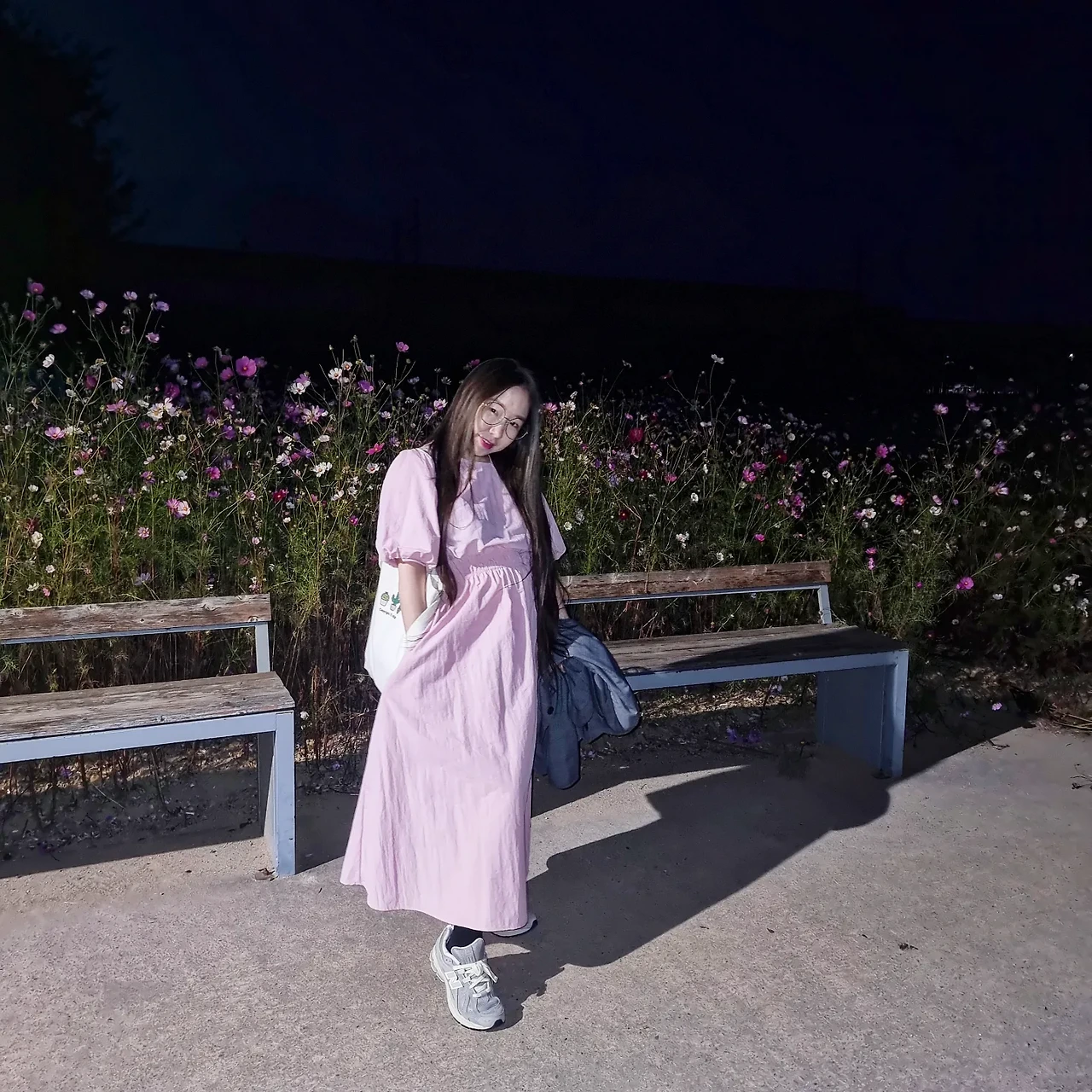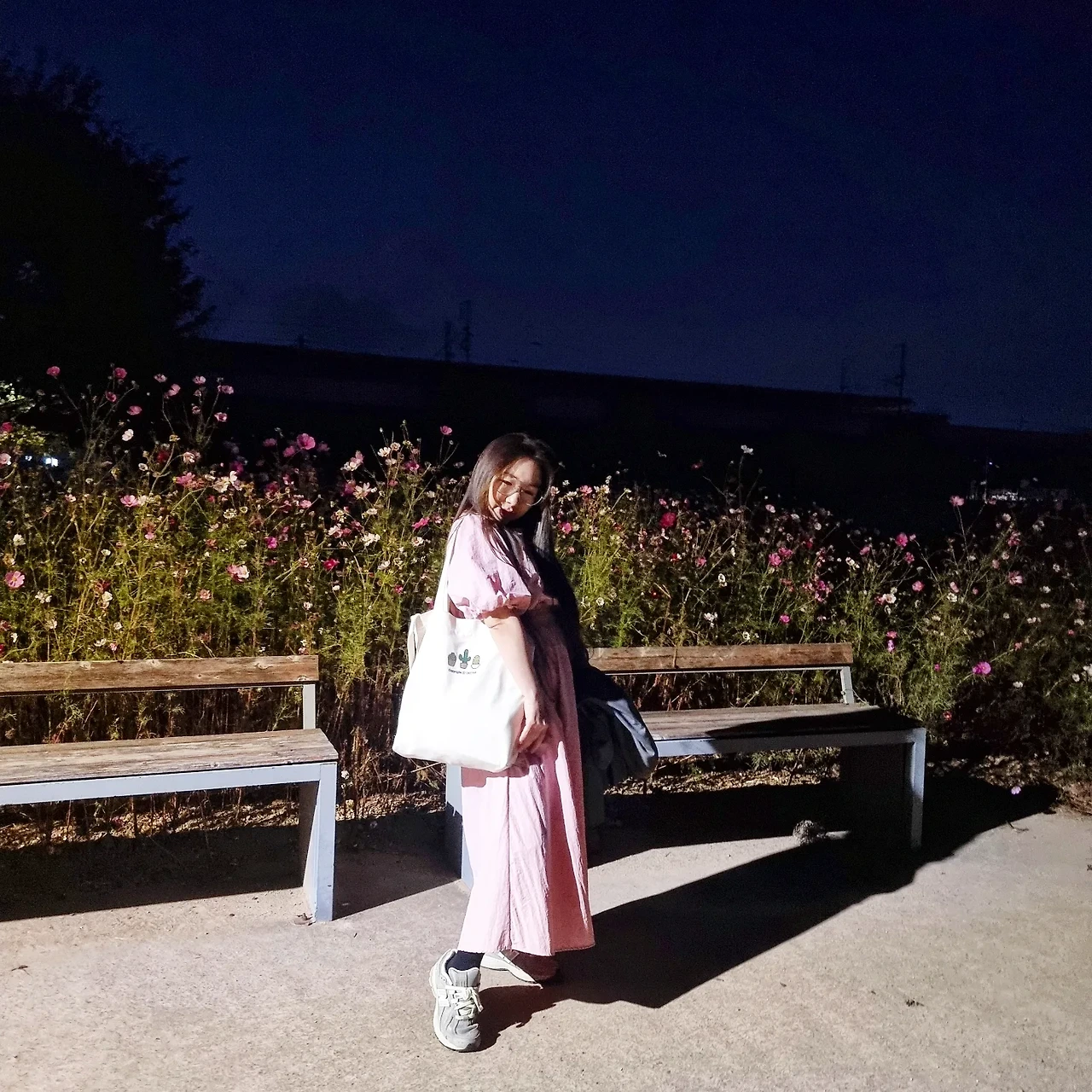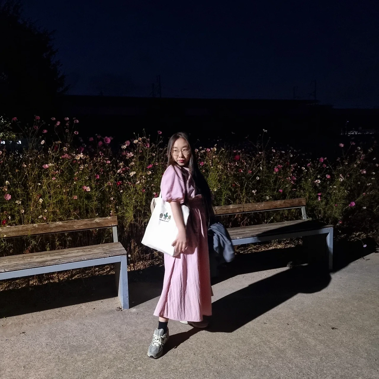 가을밤 코스모스 앞에서