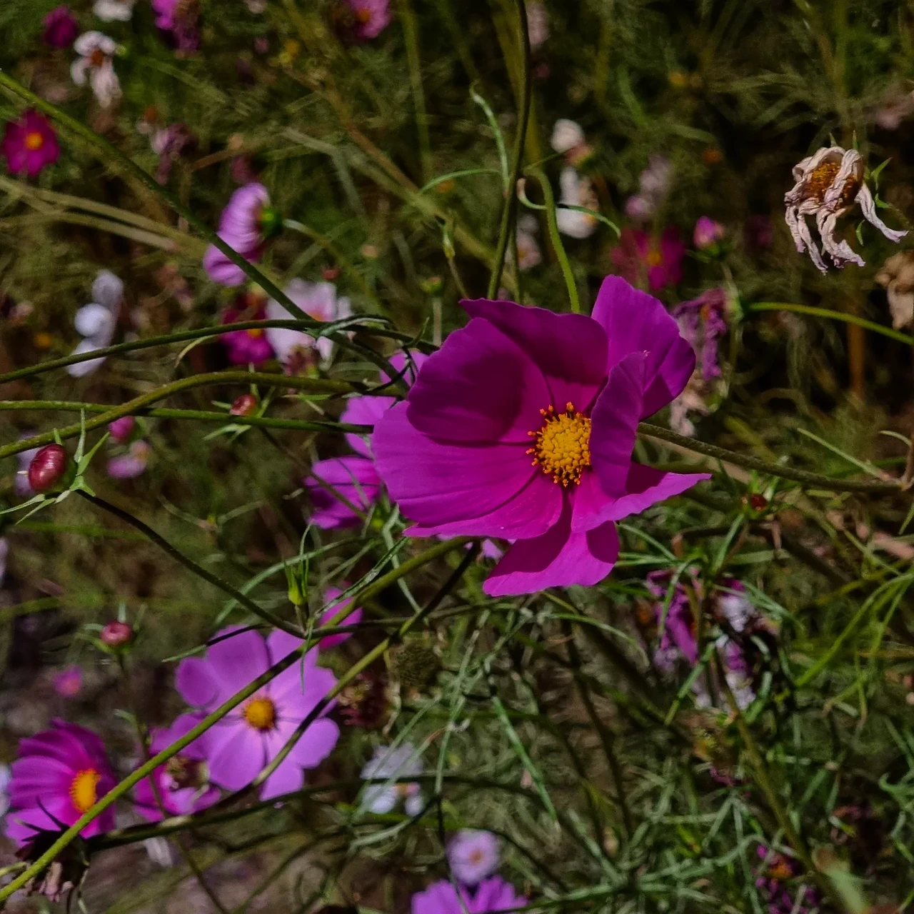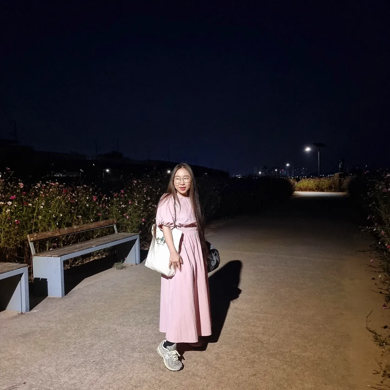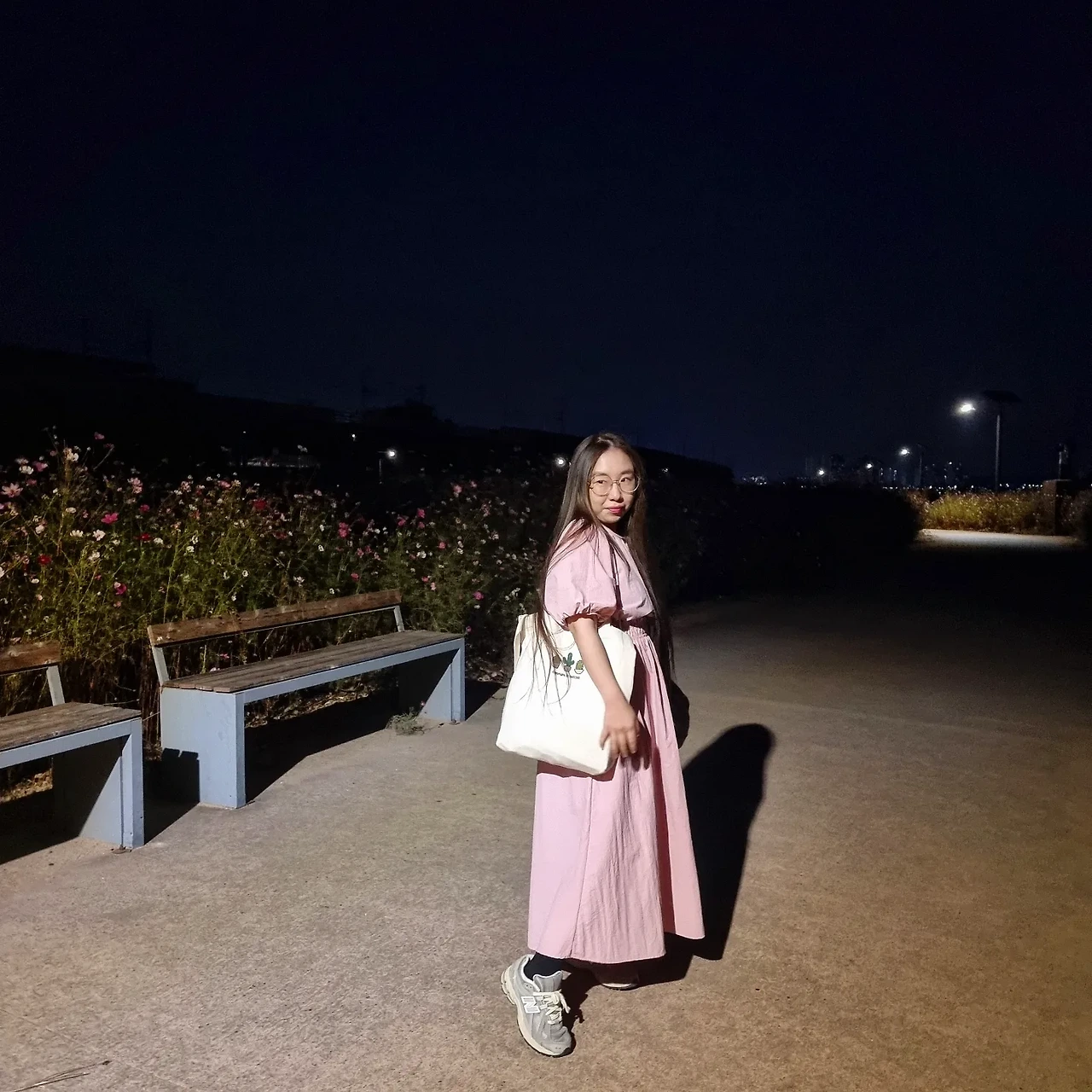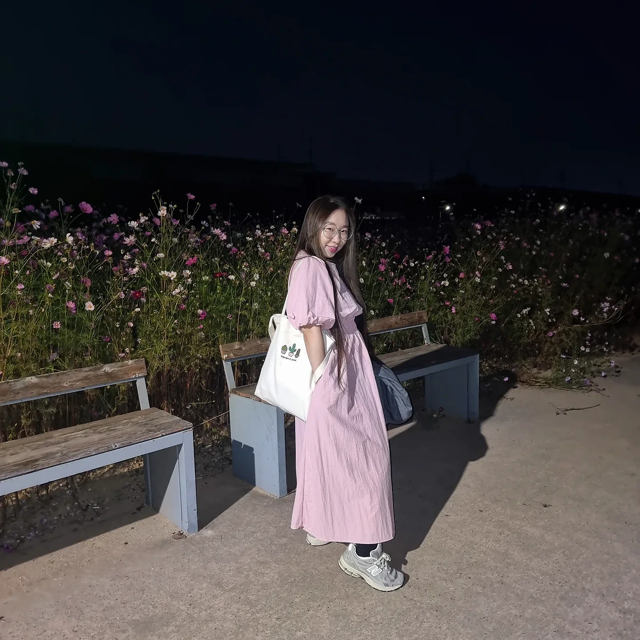 가을밤 코스모스 앞에서