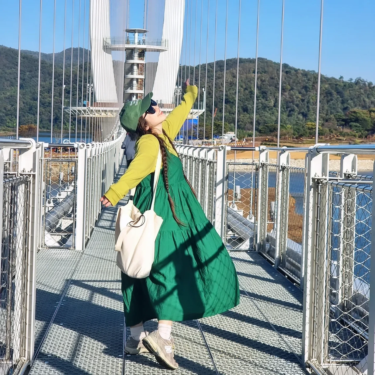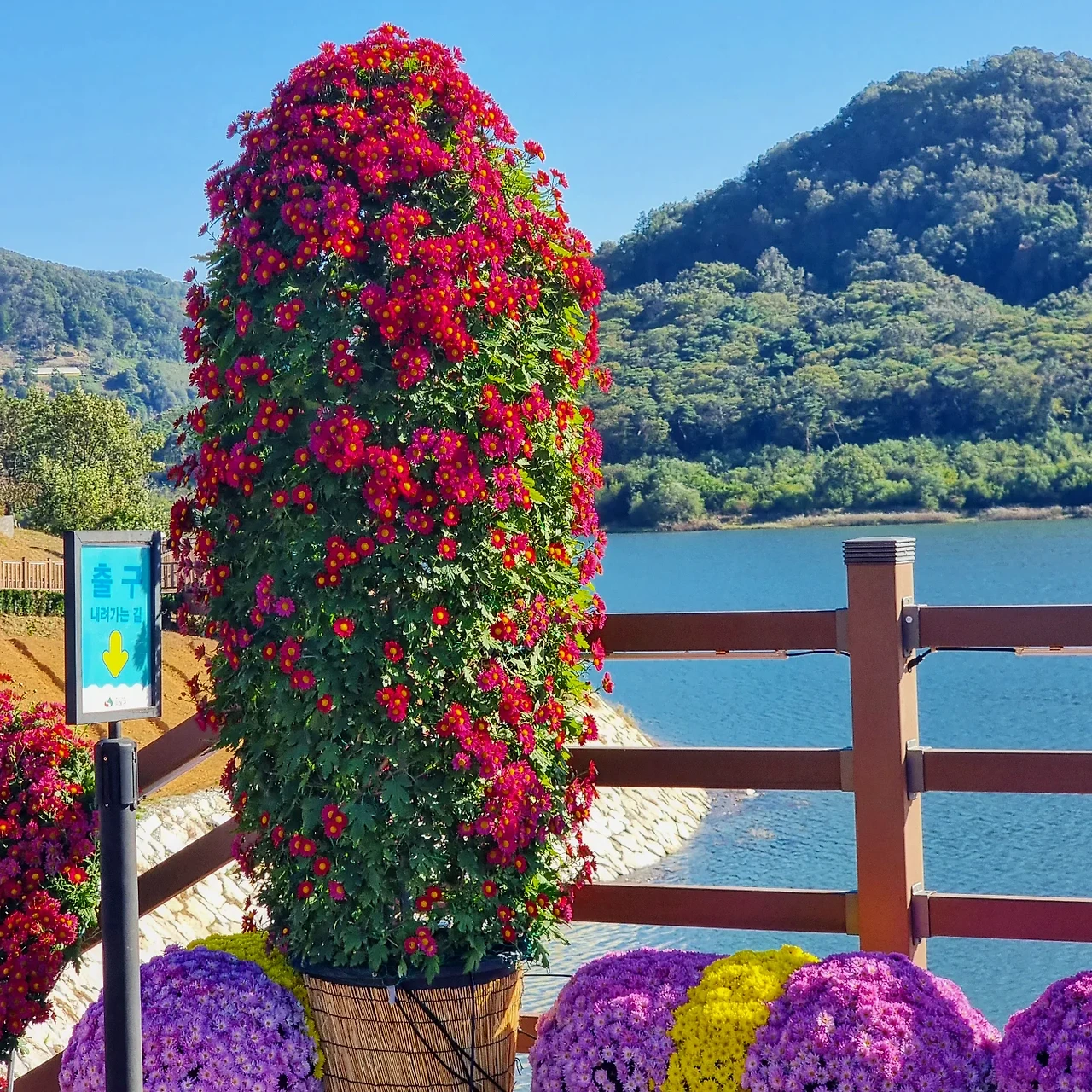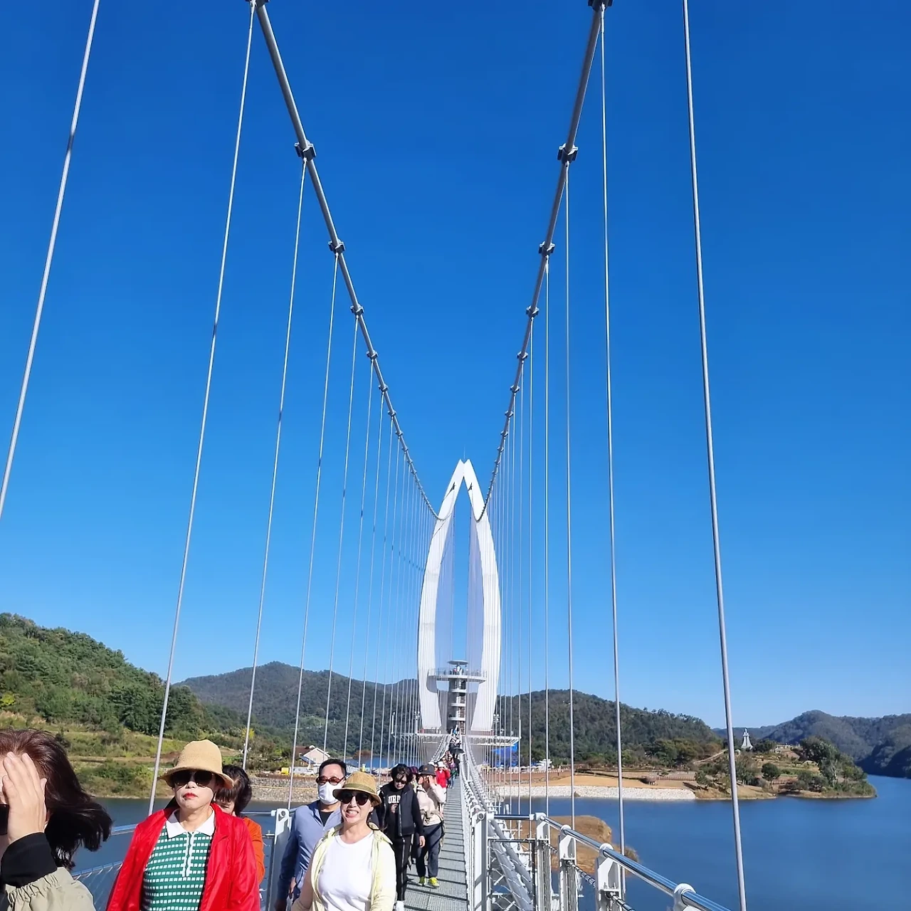 - 어제 이 시각, 그녀는 붕어섬으로 가는 출렁다리를 건넜다. 평일임에도 불구하고 많은 사람들이 가을꽃을 보기 위해 출렁출렁한 다리를 건너고 있다. 누군가는 촬영을 하고, 누군가는 포즈를 취하고, 누군가는 출렁이는 다리에 겁을 먹고 멈칫하기도 하고, 누군가는 씩씩하게 출렁다리를 걷는다. 작년 10월에 만들어졌다고 하니 딱 1년 된 옥청호 출렁다리. 내가 걸었던 다채로운 출렁다리가 있지만, 원주 소금산출렁다리 다음으로 건축의 미가 느껴졌던 곳으로 가을 국화를 사랑하는 이에게 추천하는 명소다.