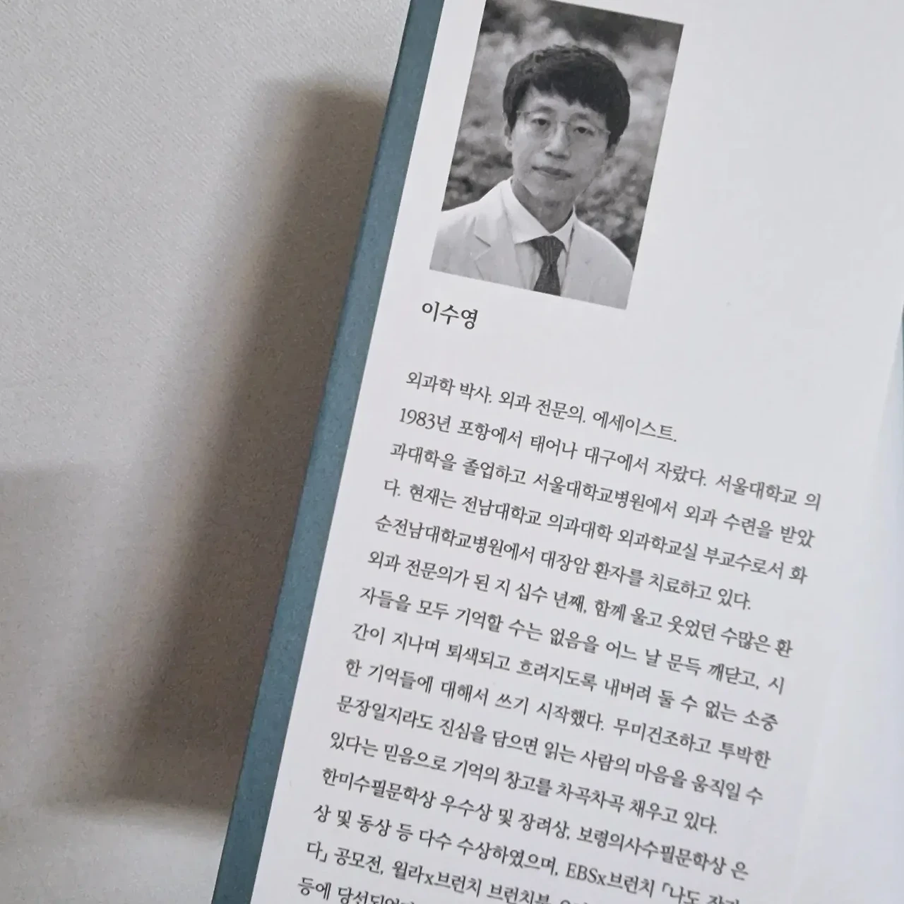 - 내가 생각하는 좋은 의사란, 환자를 살리는 의사, 환자를 배려할 줄 아는 의사, 환자에게 긍정적인 확신을 줄 수 있는 믿음직한 의사다. 이수영 닥터를 통해 의사와 환자의 사이에서 삶과 죽음 앞에서 의사의 역할이 얼마나 중요한 지를 다시금 느꼈다. 웃을 일 보다 울 일이 많을 직업일지라도, 책을 읽으면서 외과 의사가 얼마나 많은 고민과 고뇌의 시간들을 보내고 동시에 수술실 안과 밖에서 벌 벌어지는 이야기들을 아는 것이 외과 의사라는 직업을 이해하는데 도움이 된다고 생각한다. 수술실 안의 의사는 차갑고 냉철하지만, 수술실 밖의 의사는 따뜻하고 인간적인 면도 볼 수 있다는 것을 알고 있으면 환자가 의사를 이해하는 데도 도움이 될거다. 끝으로 머리가 똑똑하고 공부를 잘해서 가는 의대가 아니라, 사람의 생명을 살리기 위해서 의대에 가는 사람들이 많아졌으면 좋겠다.