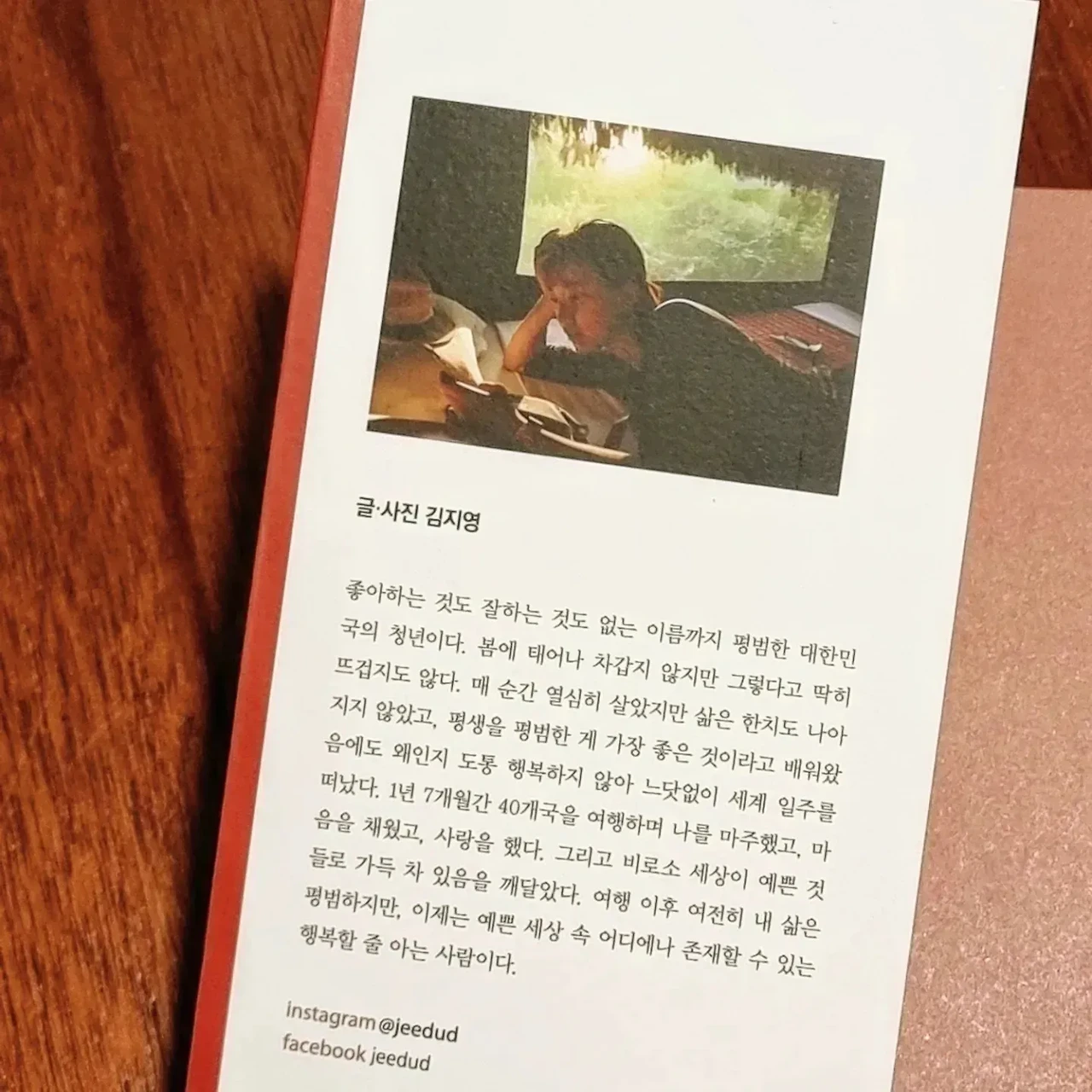- 여행 에세이를 선택할 때 우선적으로 보는 게 있다. 프롤로그 시작 지점을 읽게 된다. 여행을 하게 된 이유가 바로 독자의 마음을 이끌어 준다. 여행에서 궁금한 건 장소와 정보보다 작가의 생각과 마음이다. 그리고 사랑이다. 평범한 일상을 벗어나 누군가의 도전하는 삶을 만나면 읽는 이의 마음도 특별해진다. 이 책 속에는 웃음 꽃이 피고, 사랑이 피어 오른다. 그래서 오늘도 여행과 사랑에 빠진다.