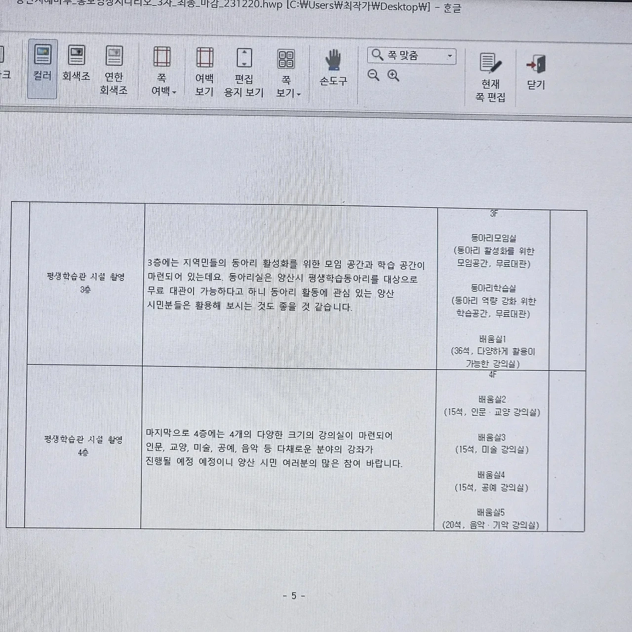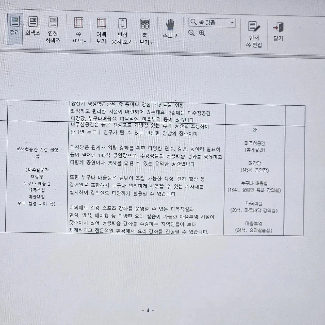 2006년 평생학습도시로 지정된 양산시는 ESG 평생학습모델 구축을 통한 따뜻한 시민공동체 구축이란 비전 아래 스마트 평생학습도시 건립을 통한 양산시민 역량 강화 및 문화적 품격 강화를 목표로 계층별 평생교육 커리큘럼을 개발하고, 새로운 학습환경의 적응력을 강화하며, 평생 학습 주체 역량 강화 및 네트워크를 형성하는 세 가지 전략을 추진하고자 합니다. 양산시 평생학습관은 각 층마다 양산 시민들을 위한 쾌적하고 편리한 시설이 마련되어 있는데요. 2층에는 마주침공간, 대강당, 누구나배움실, 다목적실, 마을부엌 등이 있습니다.