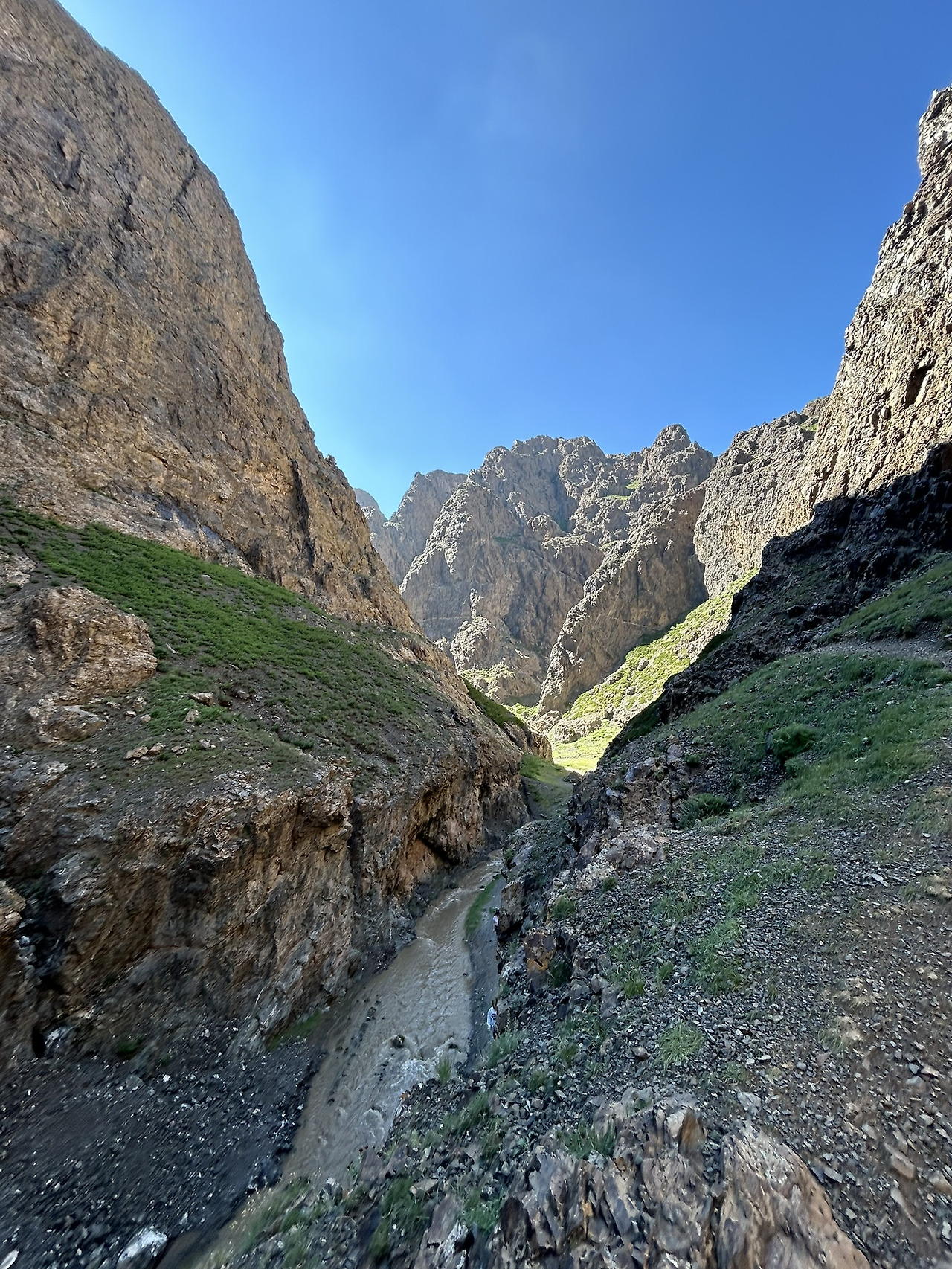 마침내 욜링암에 도착했다. 한여름에도 녹지 않는 얼음 계곡으로 유명한 곳이라고 한다. 차에서 내리자, 뜨거웠던 한낮의 더위는 사라지고 서늘한 바람이 불어와 추울 정도였다. ‘욜’은 독수리의 한 종류를, ‘암’은 계곡을 뜻해 욜링암은 ‘독수리의 계곡’이라는 의미를 지닌다고 했다. 과거 공산정권 시절에 소련 군대가 이 협곡을 냉장고처럼 사용했다고 한다. 지금은 지구온난화로 얼음이 녹아 계곡에서 얼음을 볼 수는 없었지만, 협곡의 풍경은 여전히 아름다웠다.