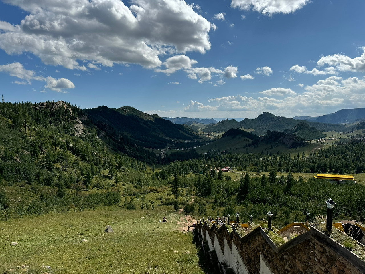 공원의 대표 명소인 거북바위를 지나, 우리는 전통 몽골 가죽 가방과 의상들을 판매하는 상점에서 기념품을 구경했다. 이후 야리야발 사원으로 향했는데, 이곳은 몽골에서 얼마 남지 않은 티베트 불교 사원 중 하나였다. 108계단을 올라 부처님께 예를 갖춘 후, 사원 내부에서 잠시 더위를 피했다. 비록 나는 천주교 신자지만, 존중의 의미로 사원의 예절을 따랐다.