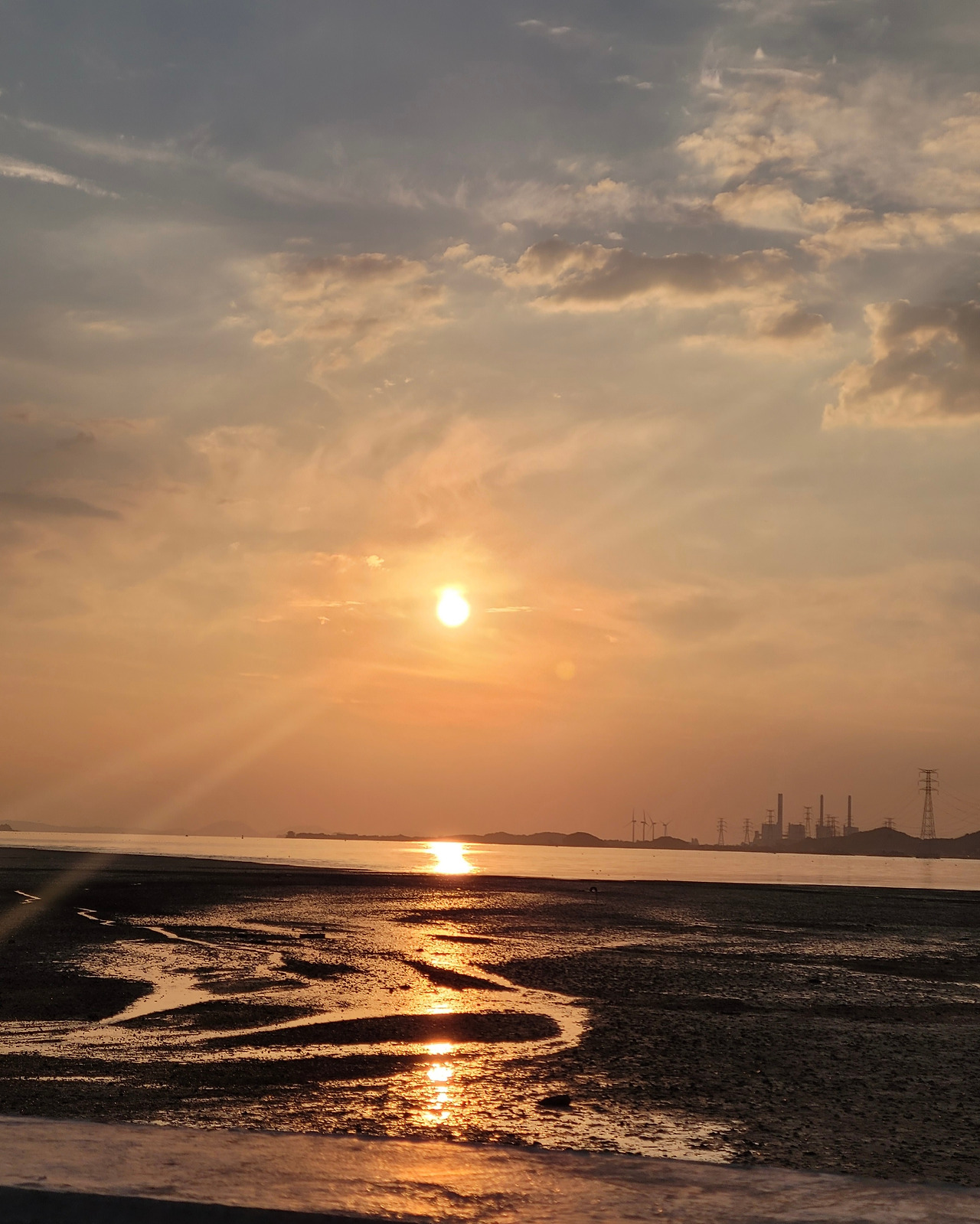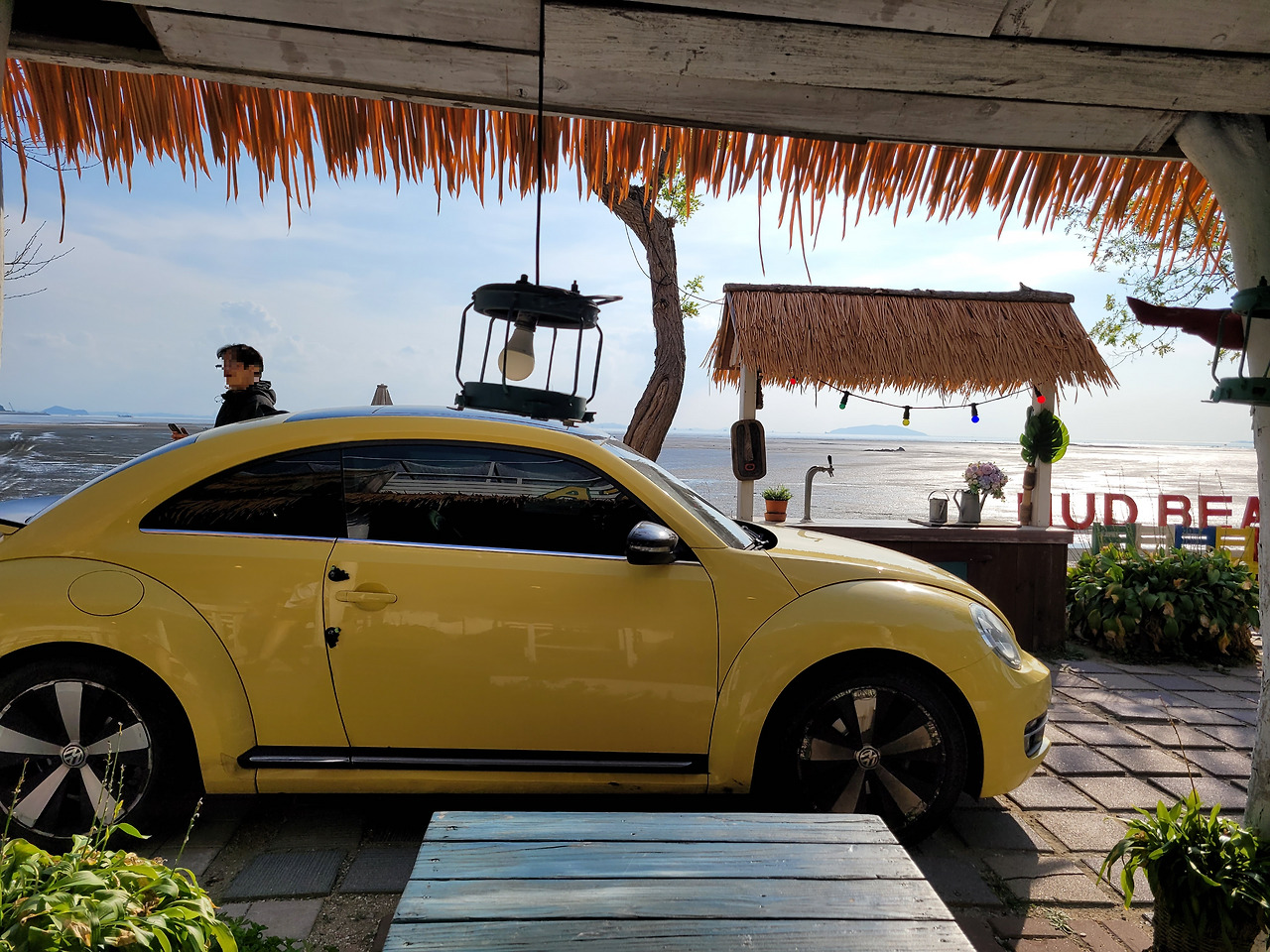 차를 타고 천천히 길을 따라가다 보니 어느새 바다가 내 양 옆으로 펼쳐지고 끝이 보이지 않는 수평선 위로 푸른 하늘과 갈색의 갯벌이 어우러져 있다. 그 길 위에 자리한 작은 카페 “뻘다방” 이 나에게 손짓을 한다.