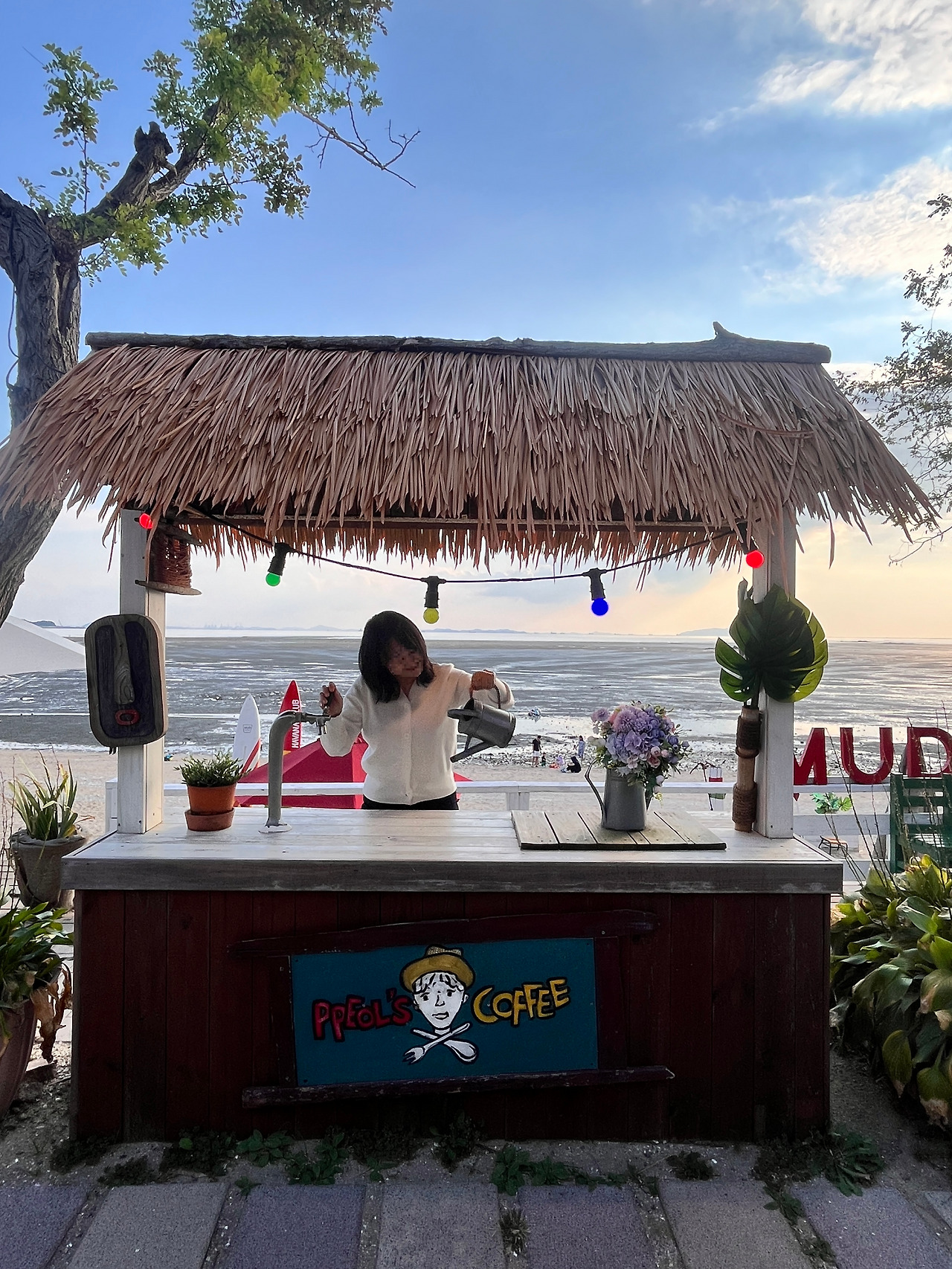 뻘다방은 그 이름만으로도 충분히 호기심을 자극했다. 갯벌 위에 세워진 이곳은 바다를 배경으로 한적한 풍경을 감상하며 따듯한 커피 한잔을 즐기기에 완벽했다.