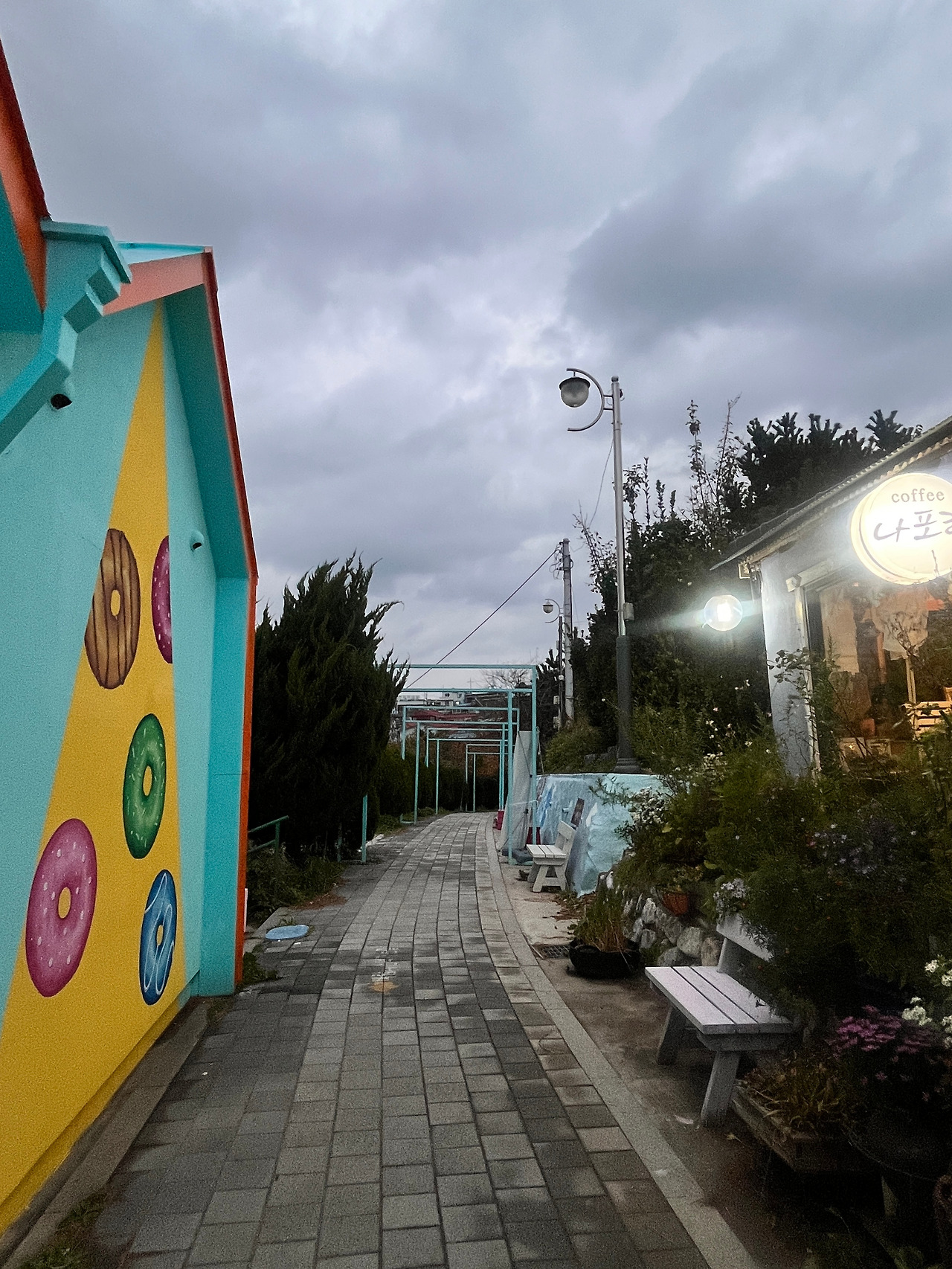 논골담길 산책은 여유가 가득했다. 단풍이 물든 언덕 너머로 동해가 한눈에 들어오는데, 그 순간만큼은 시간이 멈춘 듯한 평온함이 느껴졌다.