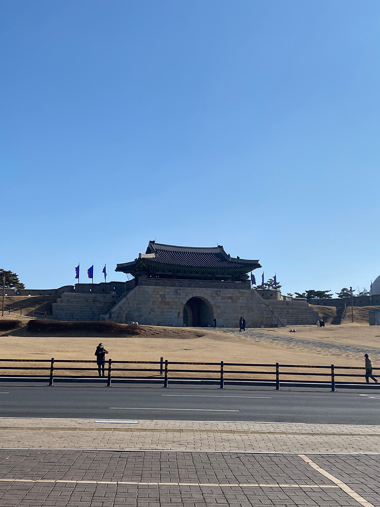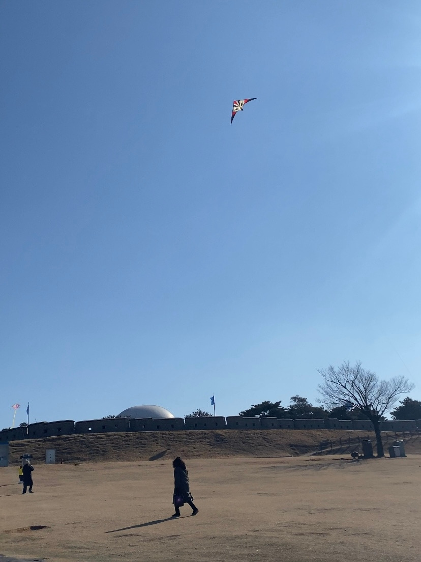 서울만 산책하다가 처음 온 수원 화성은 나에게 어딜 봐도 새로운 자극이었다. 뻥 뚫린 들판에서 연 날리고 있는 사람들을 보았을 때 정말로 평화롭고, 즐겁다는 생각이 들었다. 그리고 티 없이 맑은 하늘까지 나는 이미 택시에서 내리는 순간부터 너무너무 행복했다.