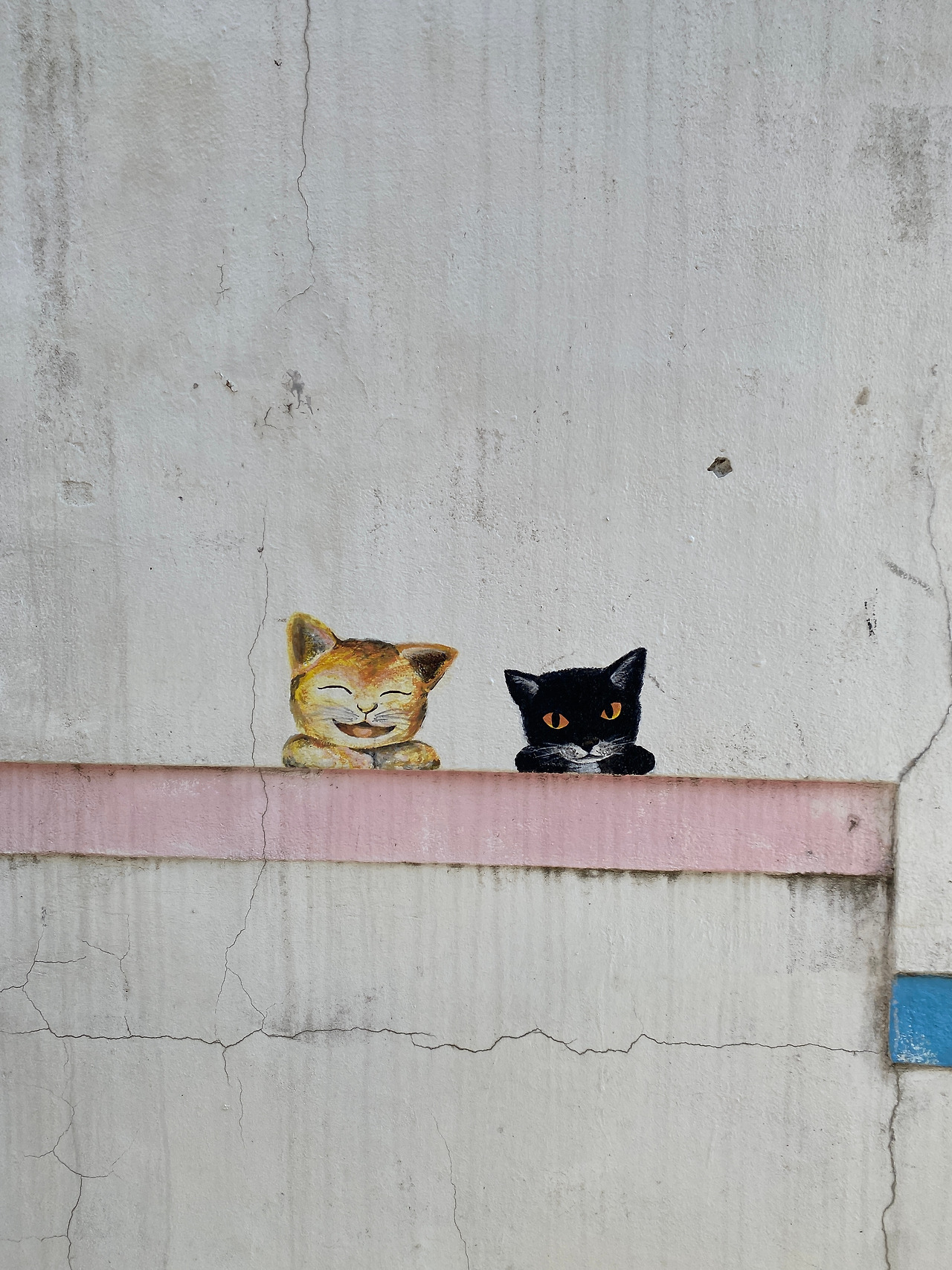 귀여웠던 벽화! 선글라스를 쓴 해와 귀여운 고양이들~