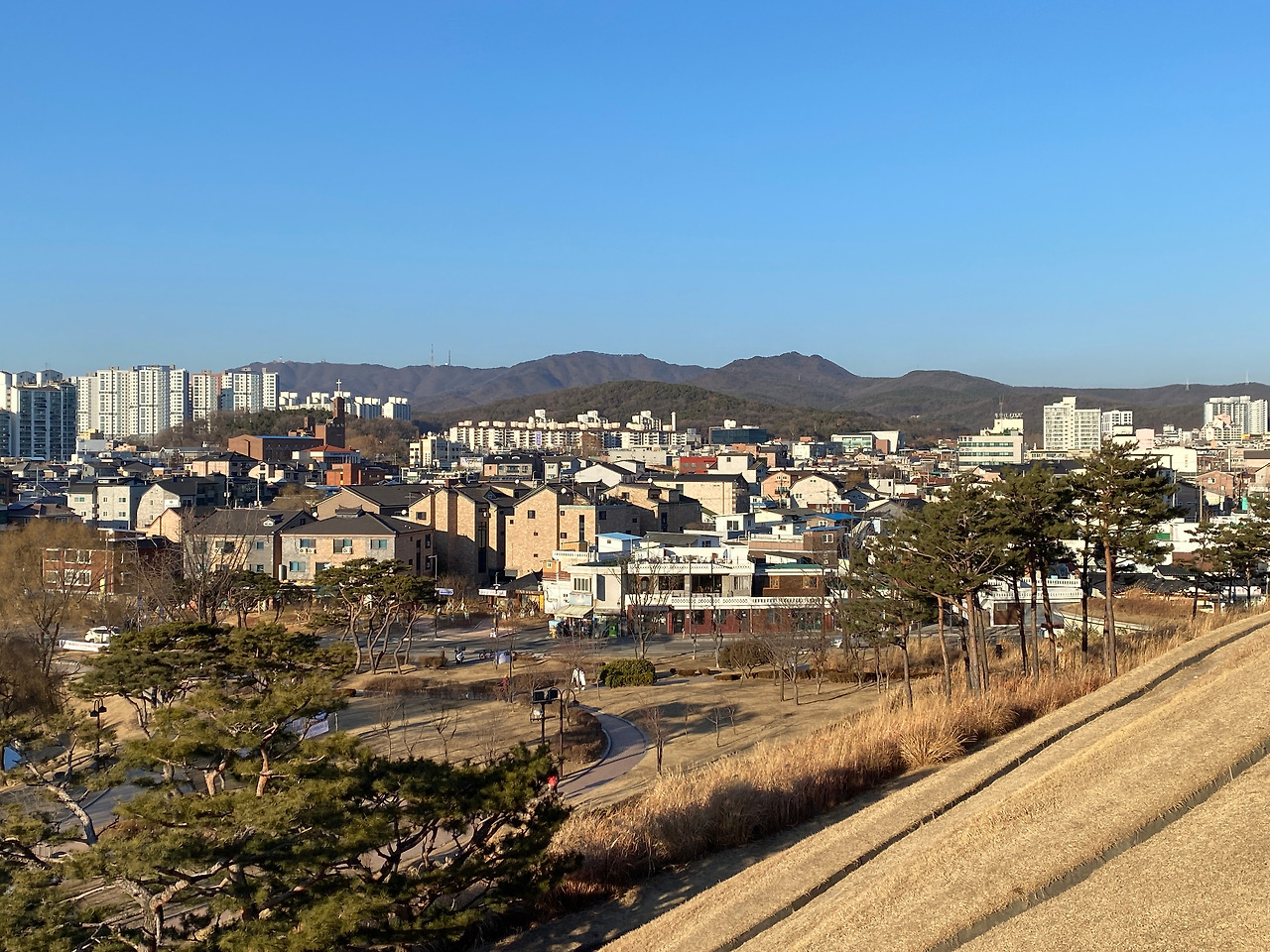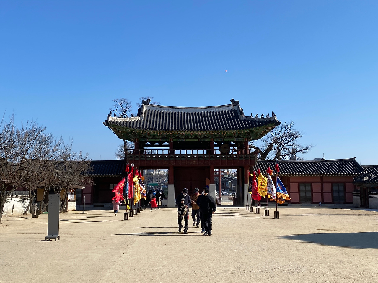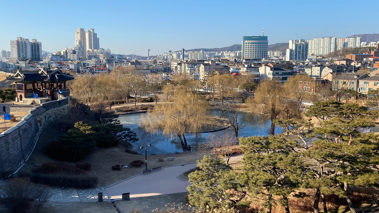 화성행궁에 도착하니까 화성행궁 광장이 앞에 넓게 펼쳐져 있었다. 뻥 뚫려 있는 광장에서 겨울바람을 맞고 있으니 마음까지 시원했다. 옆에 수원시립아이파크미술관도 있어서 이 근처 사는 사람들은 정말 좋을 것 같았다. 미세먼지도 하나 없이 하늘이 너무 맑아서 어떻게 찍어도 다 멋있었다.