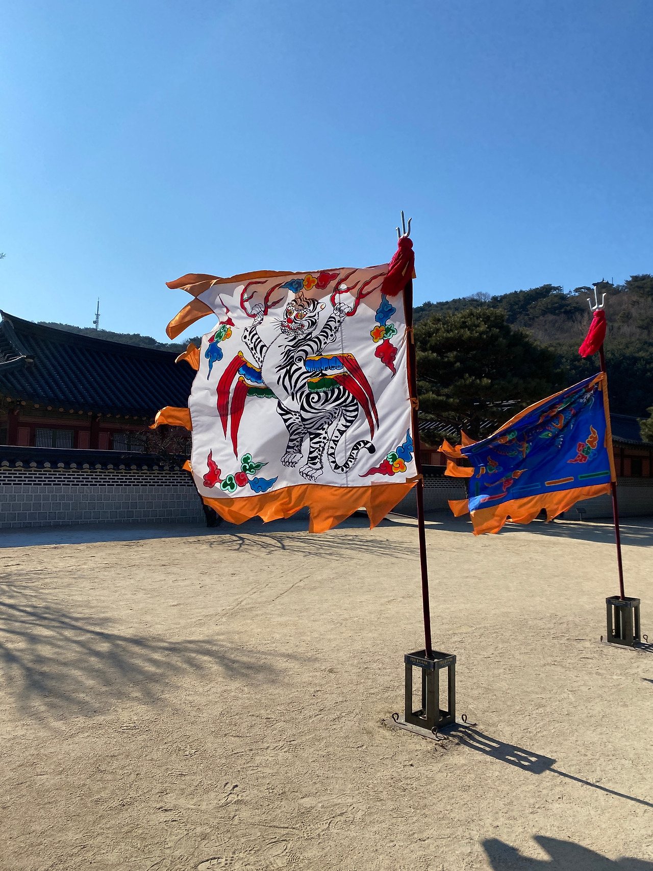 들어가기 전부터 문으로 보인 것은 바로 이 깃발들이었다. 그중에서도 호랑이 해의 기운을 듬뿍 받고 싶어서 호랑이 깃발만 한 번 찍어봤다. 2022년이 시작된 지는 조금 지났지만 구정을 맞아 다시 한번 말해본다. 모두 호랑이 기운 받으시길! 얍!
