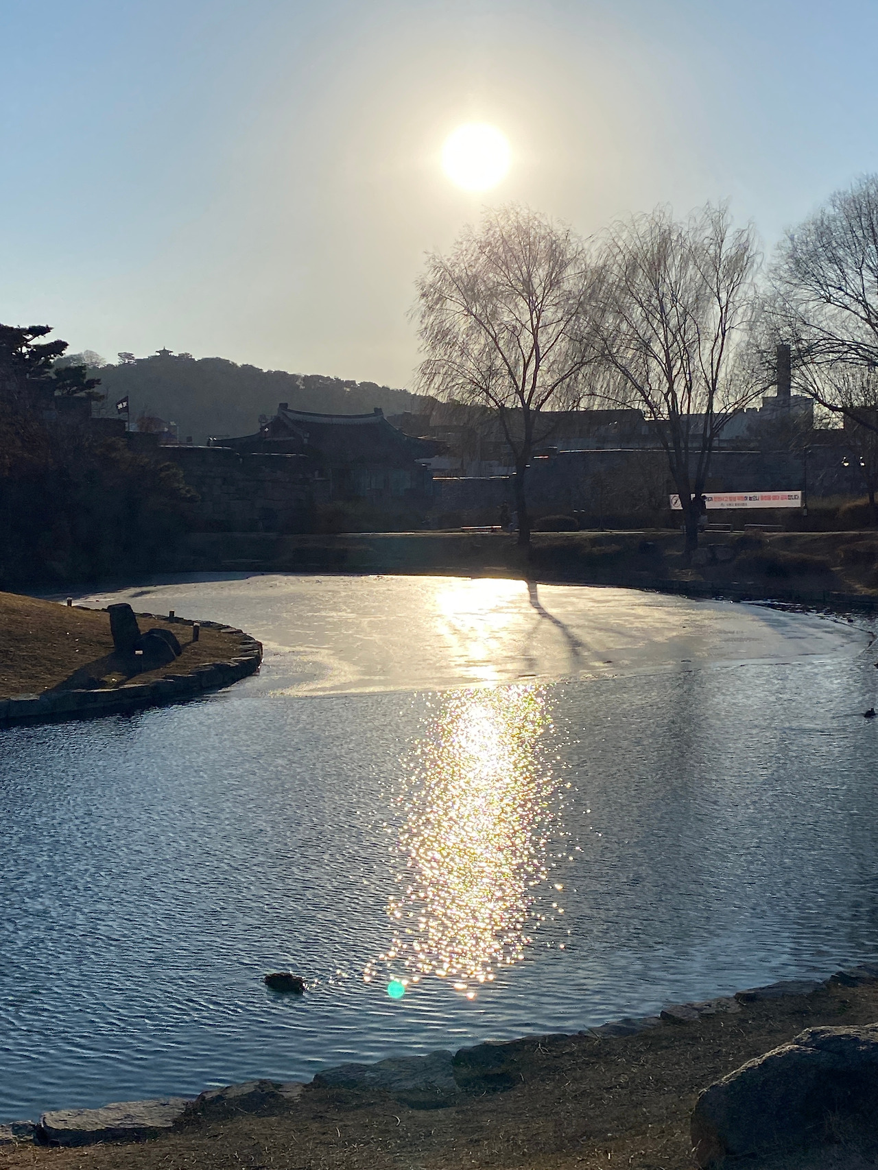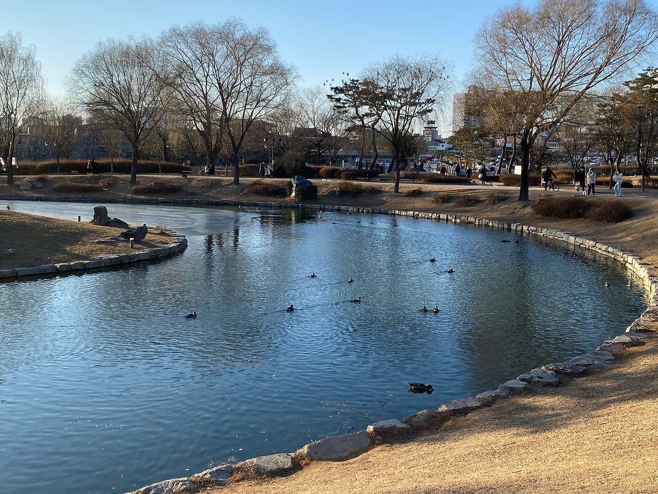 그래서 지켜만 볼 수 없어서 올라가 봤다. 얼어붙은 물 위를 올라보는 것. 너무나 오랜만이었다. 내가 영화 속 한 장면에 있는 듯한 느낌이었다. J와의 수원 화성 여행은 매우 즉흥적이어서 매 순간 좋았다. 즉흥적이어서 낭만적이었고 해보고 싶은 것은 다 해볼 수 있었다. 아쉬움이 전혀 남지 않는 여행이었다.