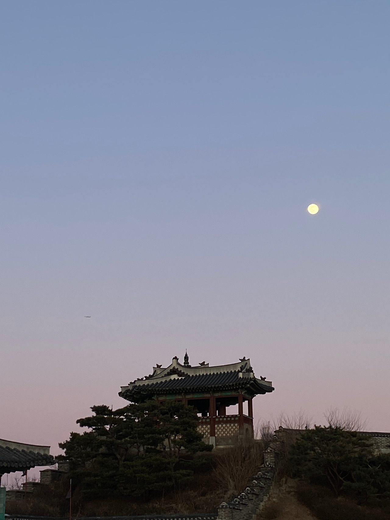 너무나 동그랗던 달과 핑크빛 하늘!! 동북각루의 야경을 보기 위해 달려가면서도 중간중간 하늘 사진을 찍었다.