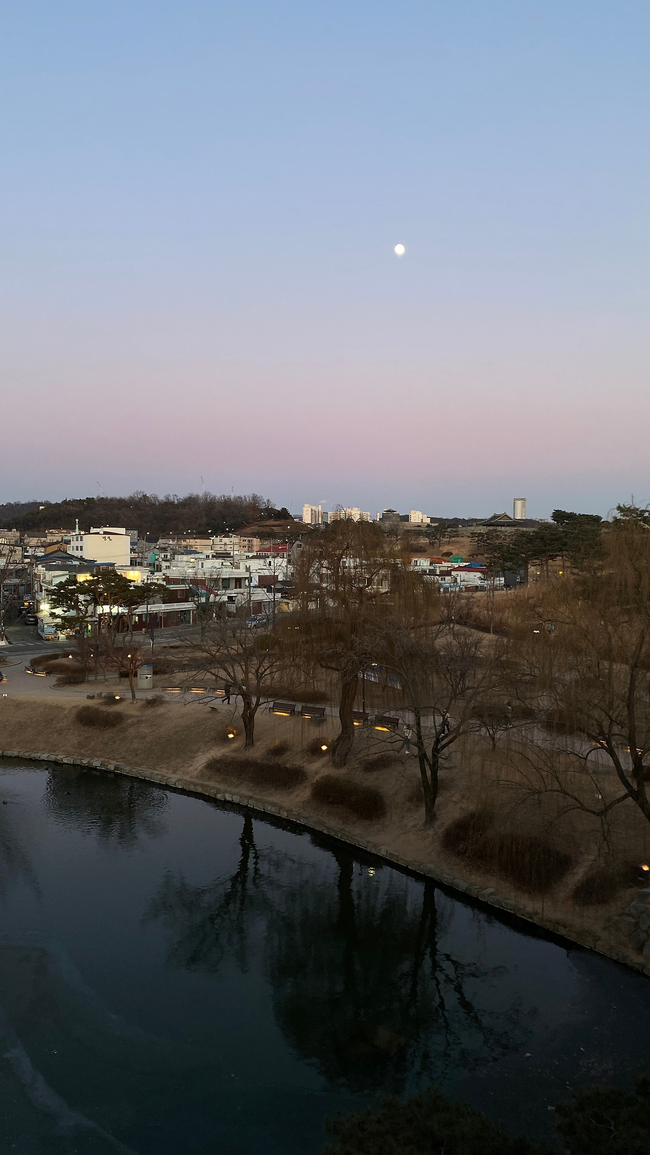 그렇게 동북각루를 구경하고 밥을 먹고 집에 가려고 했는데 식당에서 나오니까 달도 보이고 하늘도 핑크색이었다. 친구와 나는 동북각루의 야경까지 보고 가자고 말하며 달렸다.