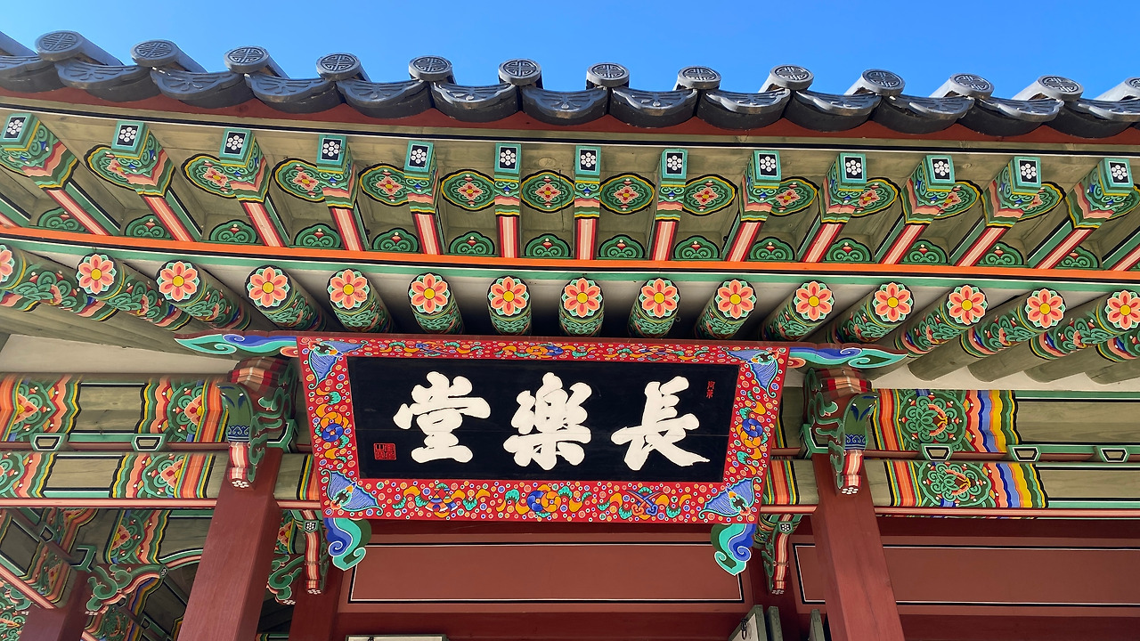 요리조리 사진도 찍어보고 지붕 사진도 찍었다. 이 지붕 사진은 '장락당' 지붕! 장락당이 가장 신기했던 점은 봉수당과 연결되어 있어서 자유로운 이동이 가능하다는 점이다. 또한 임금이 화성에 내려오면 머무는 처소로도 활용되었다고 한다.