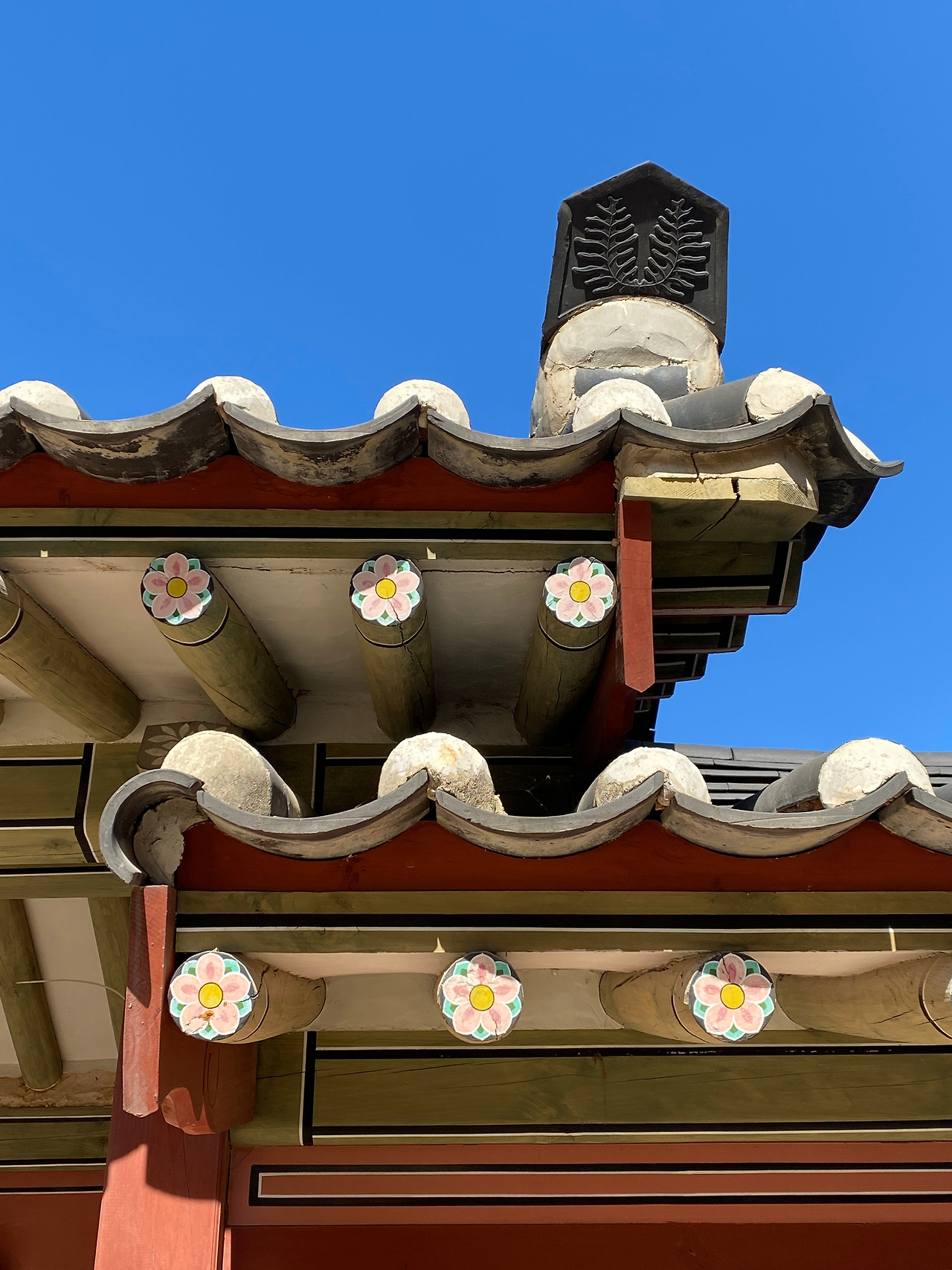 그리고 두 번째 사진은 기와 두 장을 겹치게 찍었다. 꽃 모양이 들어가 있는 게 너무 예뻤다. 찍고 너무 마음에 들어서 친구한테 바로 보여줬던 기억이 난다.