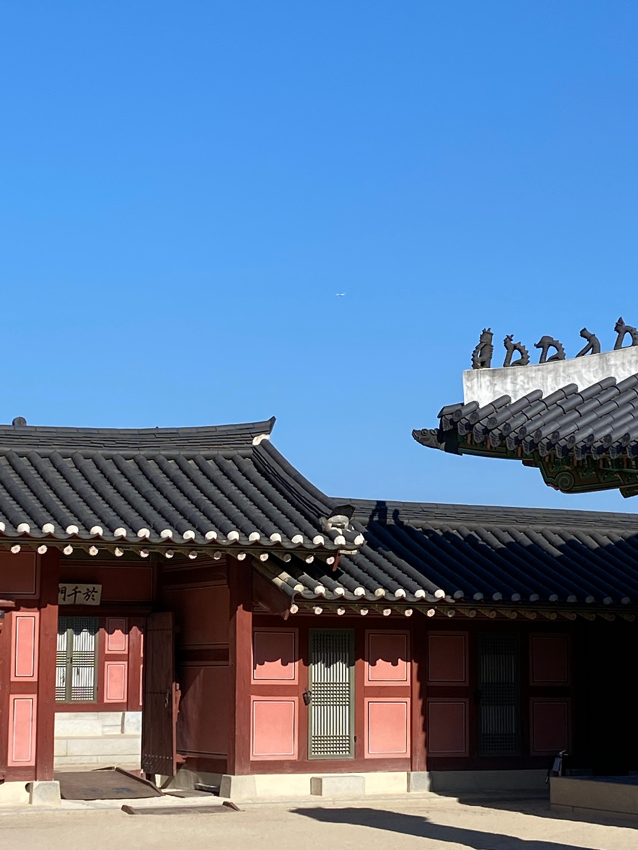 마지막 세 번째 사진!! 이것도 정말 마음에 들었다. 오른쪽에 살짝 걸린 장식 기와와 수평이 잘 맞는 기와지붕, 그리고 사진을 확대해서 보면 비행기가 조그맣게 지나가고 있다. 모든 포인트가 재밌는 사진이라 너무 마음에 든다.