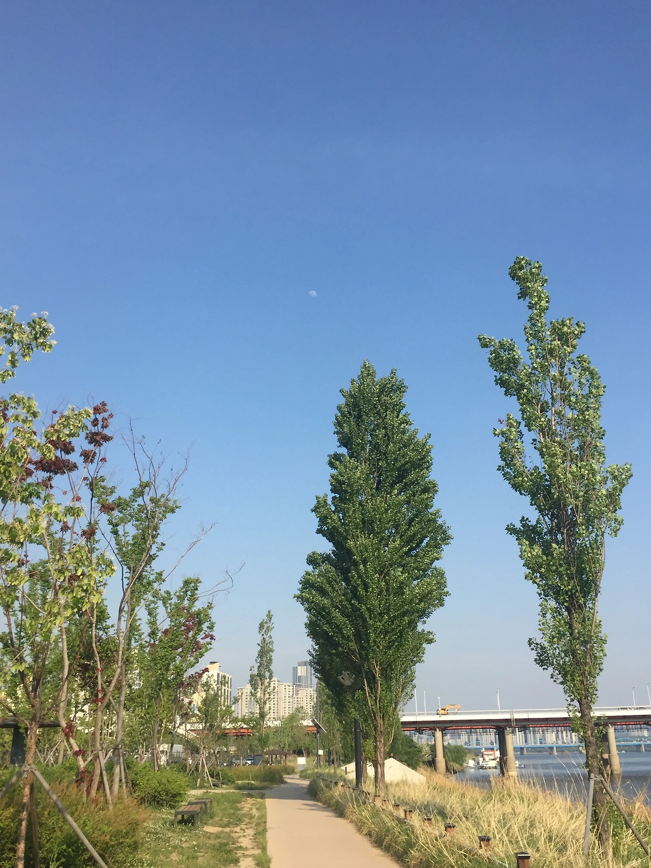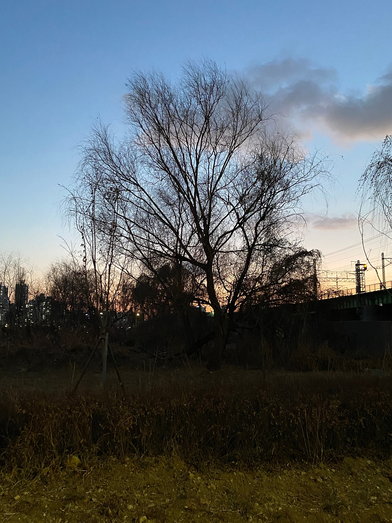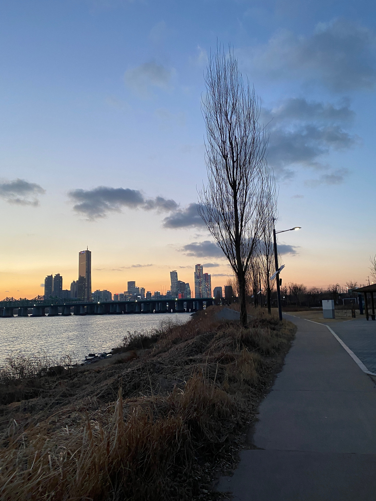 한강을 사이에 두고 바라보는 여의도는 지금껏 너무나 멀게만 느껴졌던 그 여의도보다 가깝게 느껴졌고, 이런 시시한 생각을 하며 다른 잡생각들을 덮을 수 있었다. 그리고 아예 검은 하늘이 되기 전 한강철교 진입로 쪽으로 넘어갔다.