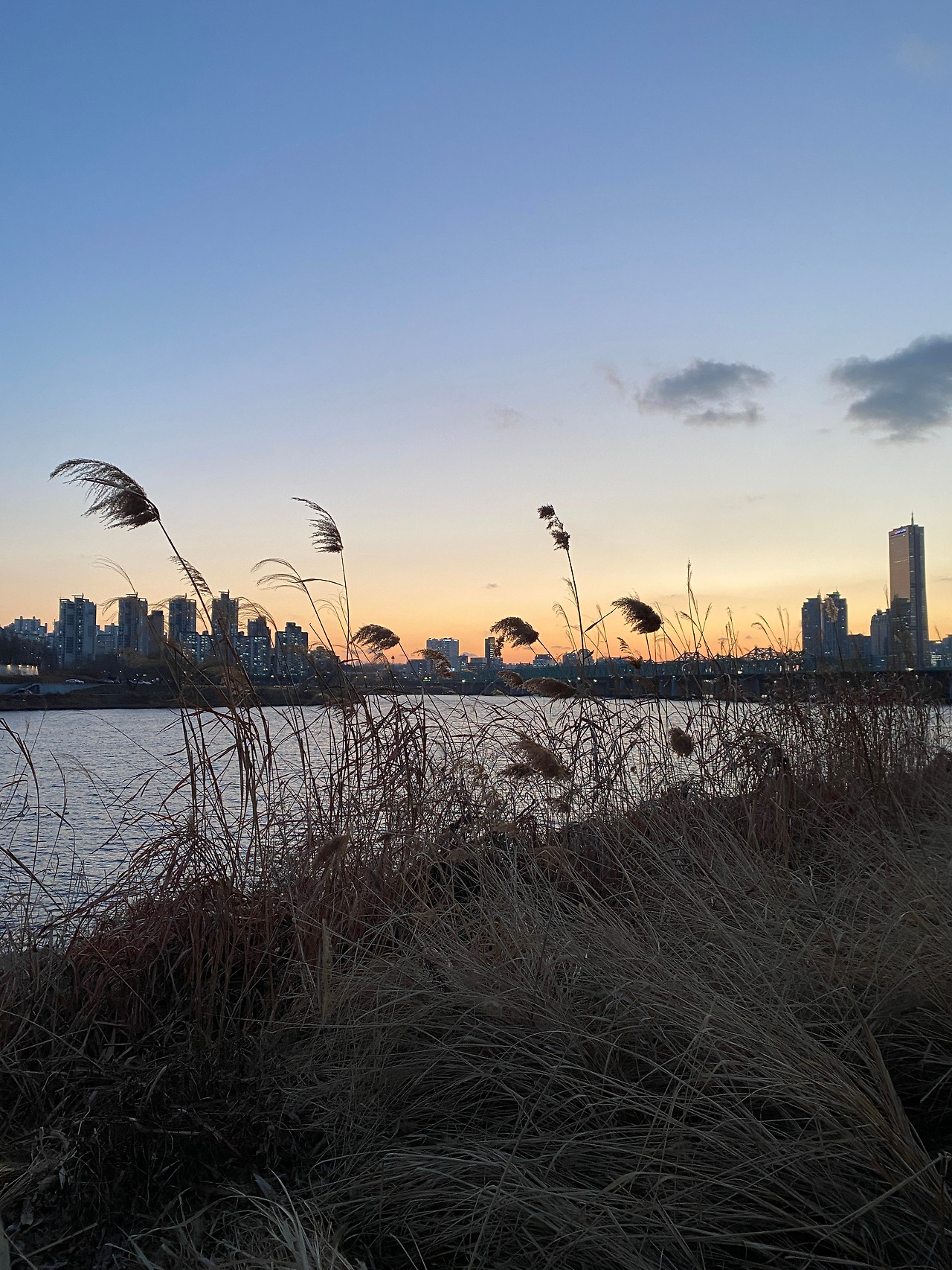 퇴근길 고작 30분의 노을을 보려고 영하의 추위에 허겁지겁 달려서 한강에 도착했다. 누구는 이해할 수 없을지도 모르겠지만 우리의 삶은 대부분 비슷하고 휘발되는 날들의 반복이다. 그 속에서 고작 그 30분이 그 하루를 대표하는 기억이 된다면 앞으로도 나는 기꺼이 체력과 시간을 투자할 용의가 있다.