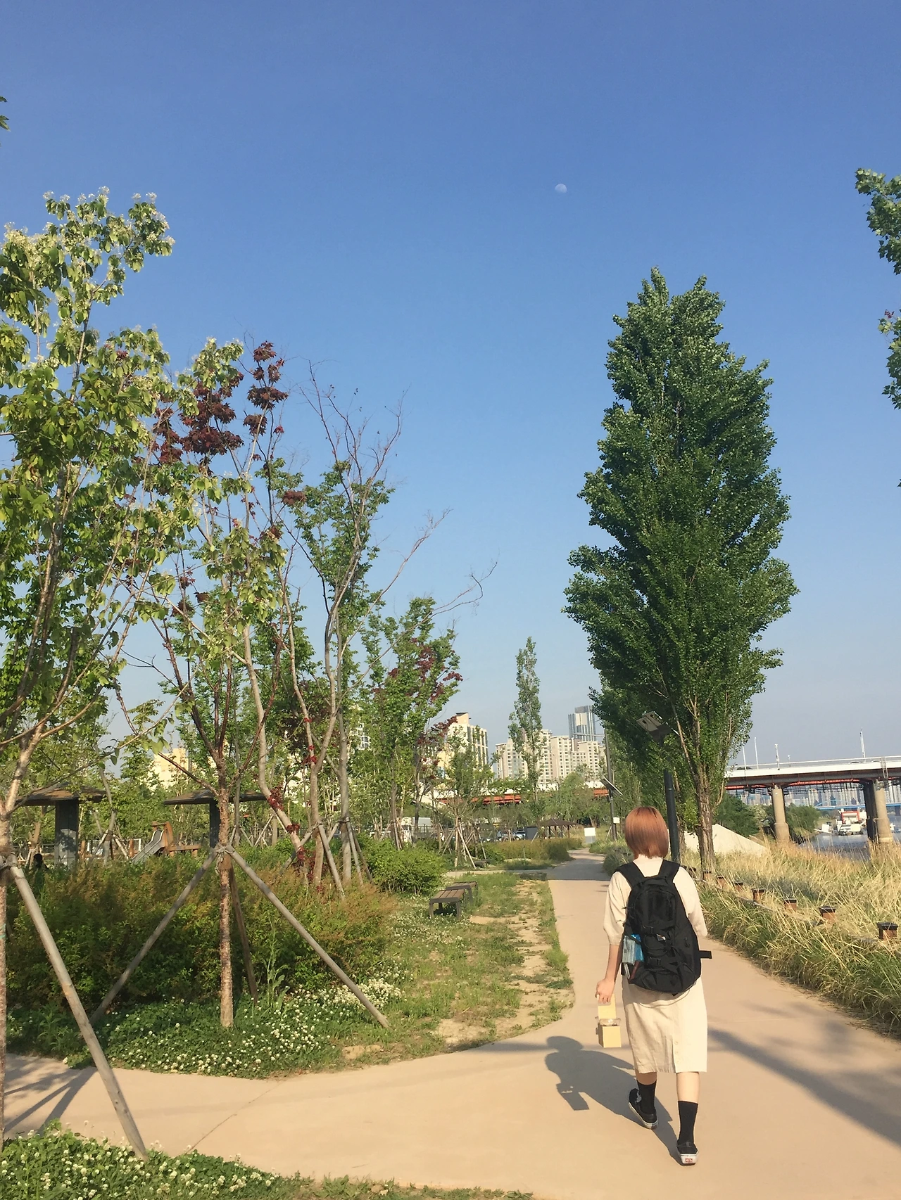 6시가 되면 한시라도 빨리 집에 가고 싶은 마음이 들던 것과 달리 신용산에서는 조금만 걸으면 이런저런 재미를 찾을 수 있어서 좋았다. 그동안 용산 아이파크몰에서 쇼핑을 하기도 했고, 잠수교를 걷기도 했고, 국립중앙박물관 야간개장을 가기도 했다. 이번에는 혼자 이촌한강공원에서 일몰을 보고 집에 가고자 잰걸음을 걸었다.