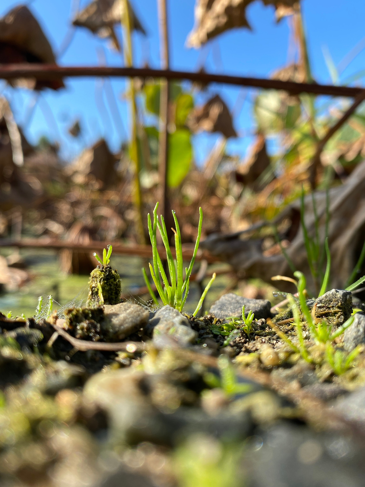 또 이곳에선 물가의 수생식물들을 관찰하는 게 재밌었다. 연못 근처 흙에 뿌리내린 작은 수생식물들은 매우 작기 때문에 주의를 기울여 보지 않으면 잘 보이지 않는다. 하지만 조금만 시야를 낮추면 가장 오른쪽 사진 속 풀처럼 귀여운 풀들을 만날 수 있다. 그리고 마지막으로 이 연원에는 개구리가 정말 많다!