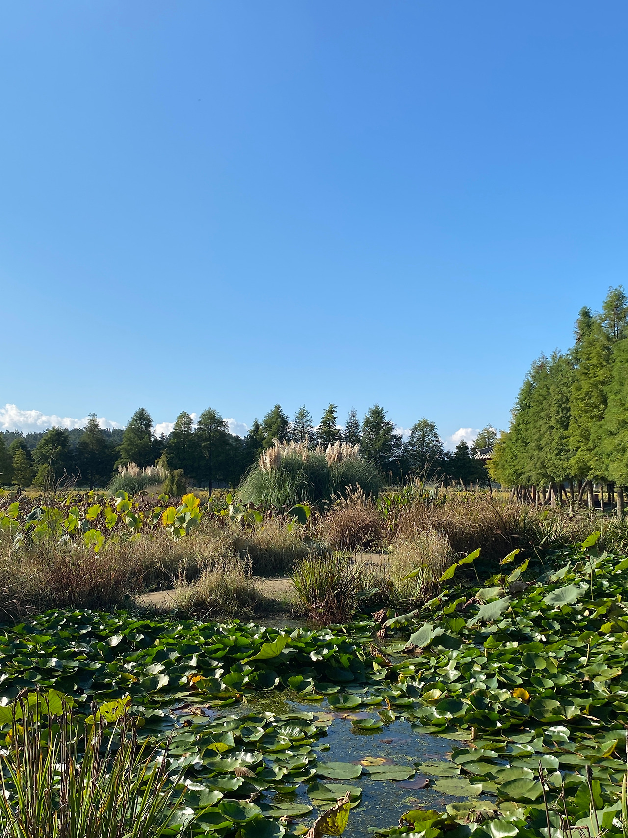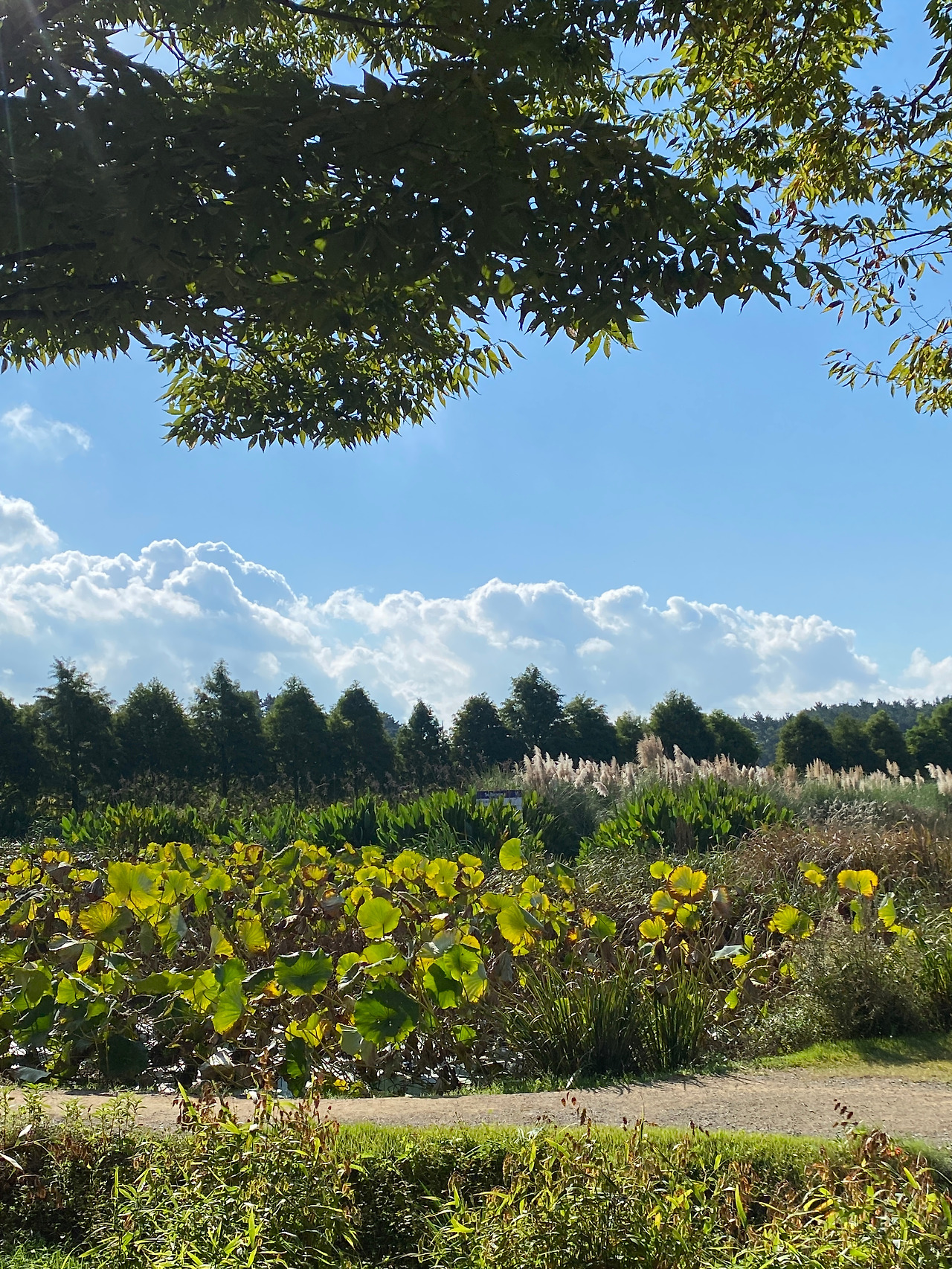 처음 들어가면 테마원으로는 연원을 마주하게 된다. 수생식물과 연꽃이 가득한 테마원이라는데 10월이라 그런지 거의 지는 시기였다. 그래서 가까이서 찍는 것보다는 이렇게 전경이 다 보이도록 카메라에 담는 것이 더 잘 나오는 것 같아서 전경 위주로 사진을 찍었다.