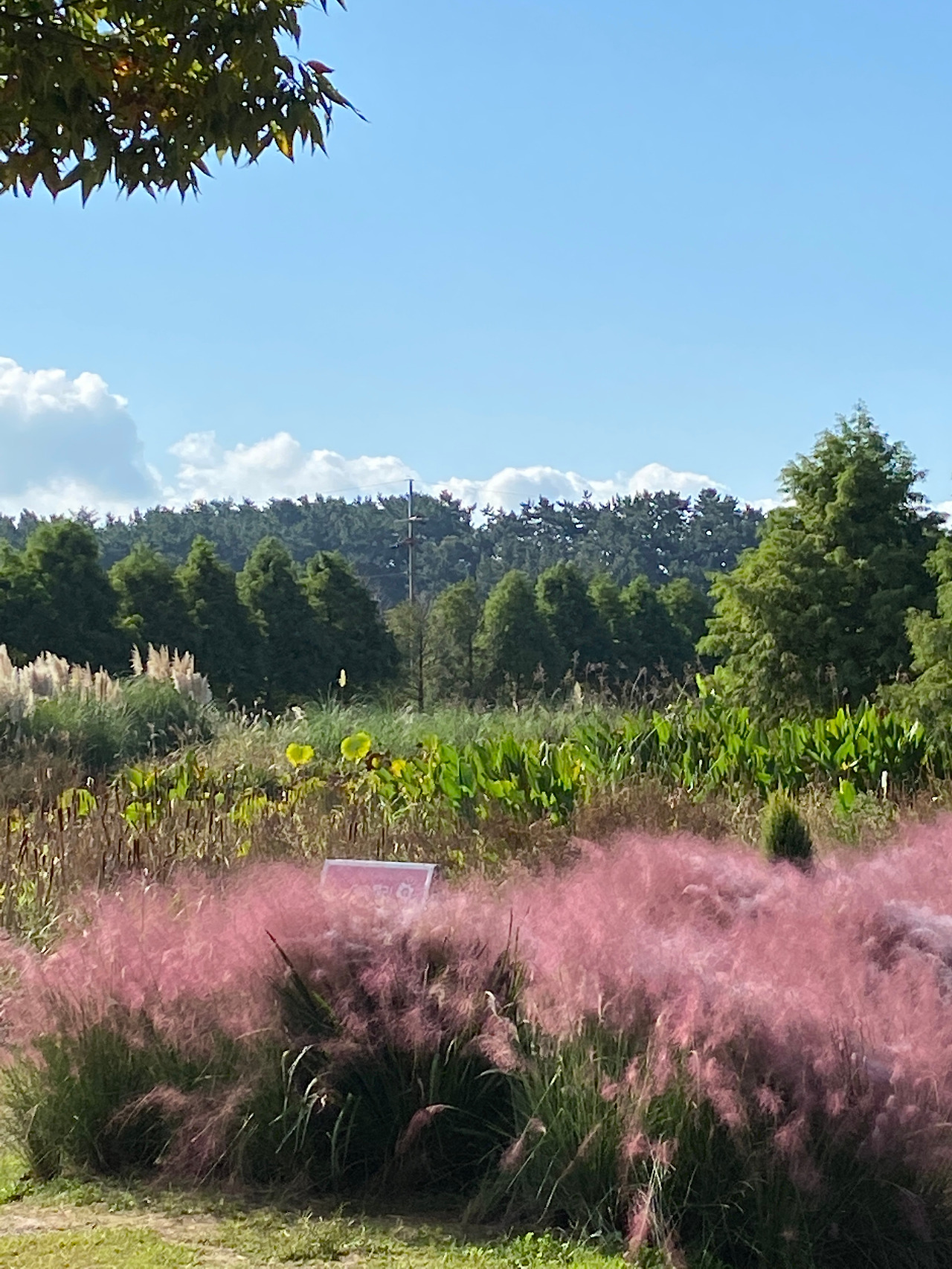 수목원에 다녀와서 후기를 봤는데 이 수목원이 호불호가 많이 갈리는 곳이었다. 그런데 나의 느낌은 호! 왜냐하면 개별로 보면 조금 아쉽다고 느낄 수도 있는데 '핑크뮬리 + 나무 + 구름 + 수목원 주변에 자리한 논'까지 전체적인 조화가 멋있었던 수목원이었기 때문이다.