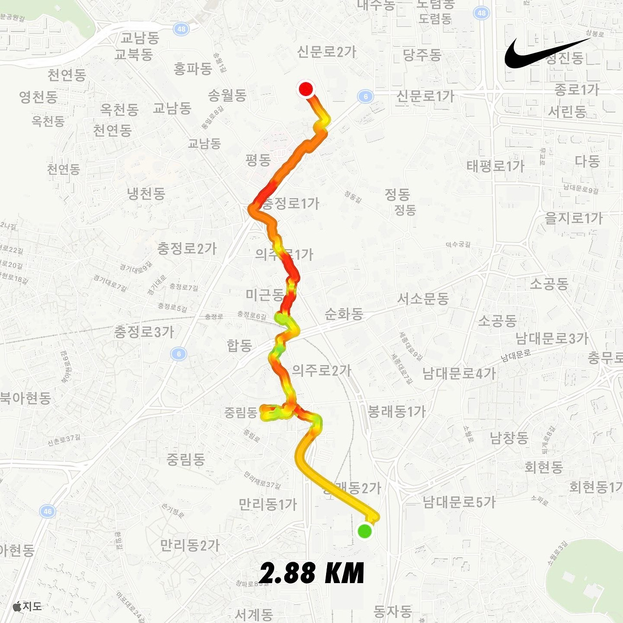 이날의 산책은 나이키런클럽을 켜고 걸어서 기록도 남길 수 있었다. 2.88KM. 생각보다 많이 걸은 것 같은 이유는 사실 이날 서울역 일대를 지나 경희궁, 정동까지 산책하는 코스였기 때문이다. 경희궁과 정동은 따로 묶어 글을 써보려고 준비 중이다. 다른 소재도 많아서 언제 업로드할지는 아직 모르겠으나 그래도 많은 기대 부탁드립니다!