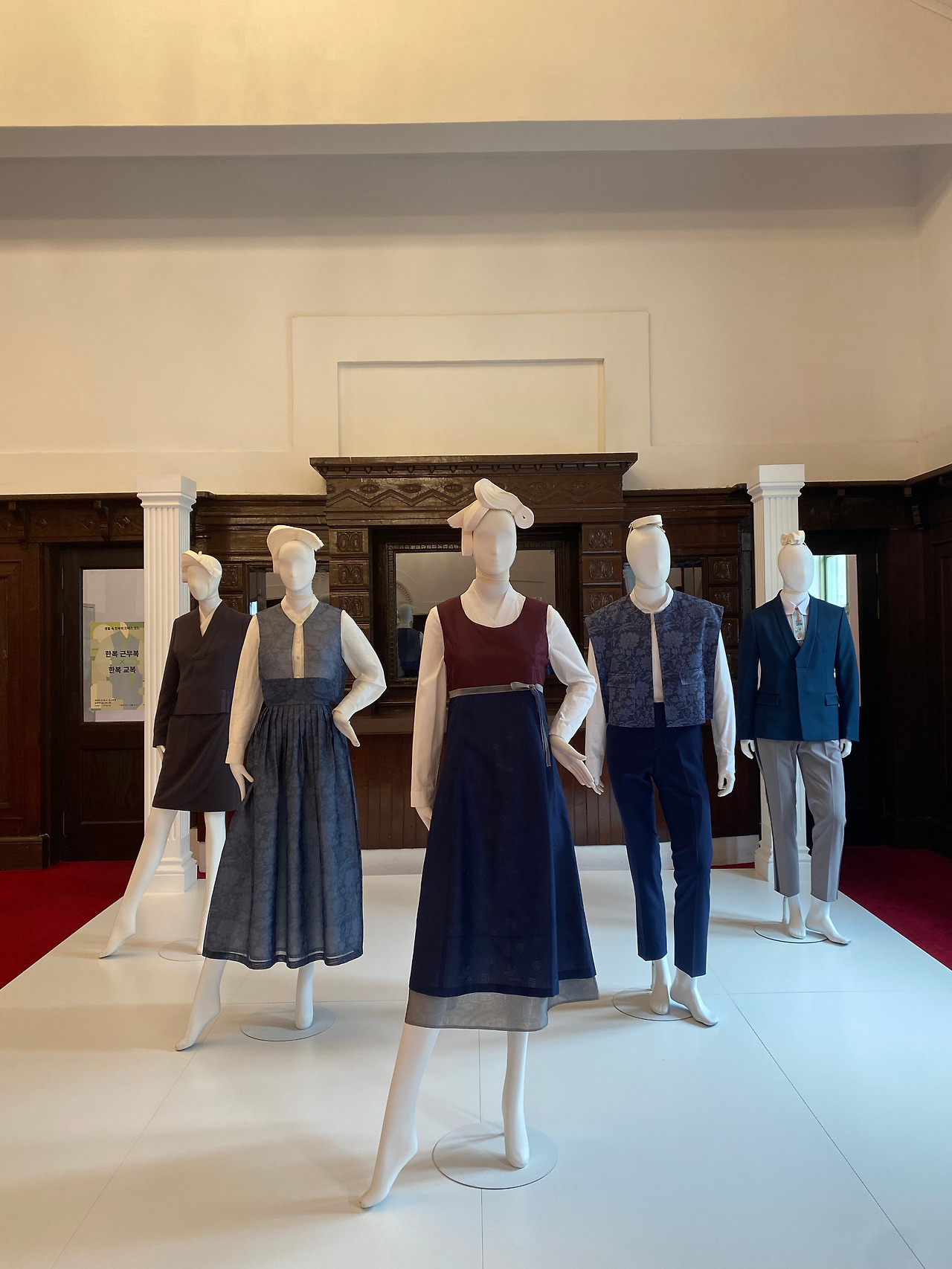 사실 '문화역서울284'에서는 좋은 전시들을 많이 했는데 날짜를 놓쳐 보지 못한 전시가 많았다. 이 날도 그래서 그냥 지나치려 했는데 다른 전시가 진행되고 있는 듯했다. 앞에 계신 직원 분께 들어가도 되냐고 여쭤보았고 된다는 답변을 들어서 바로 들어갔다. 서울역 투어의 첫 코스는 문화역서울284에서 진행되는 '생활 속 한복의 드레스 코드'라는 전시였다. 지금 우리가 한복을 입는다면 업종, 직업에 따라 어떻게 입을 수 있을지 상상해볼 수 있게 하는 전시였다. 한복을 현대의 교복과 근무복으로 풀어낸 전시였다.