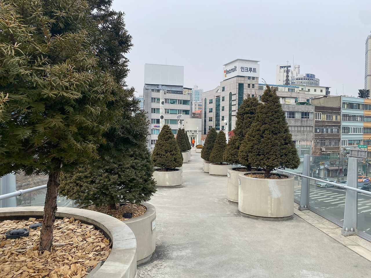 다음은 서울로 7017! 문화역서울284에서 중림동으로 넘어가기 위해 다리 위로 올라왔다. 서울로 7017은 여름에 오면 정말 예쁠 것 같은데 자꾸 이런 으스스한 분위기의 겨울에 오게 되어 아쉽다. 다양한 종류의 나무들이 있었는데 나무 기둥만 보다 와서 아쉽다. 꼭 여름에 가보고 싶다.
