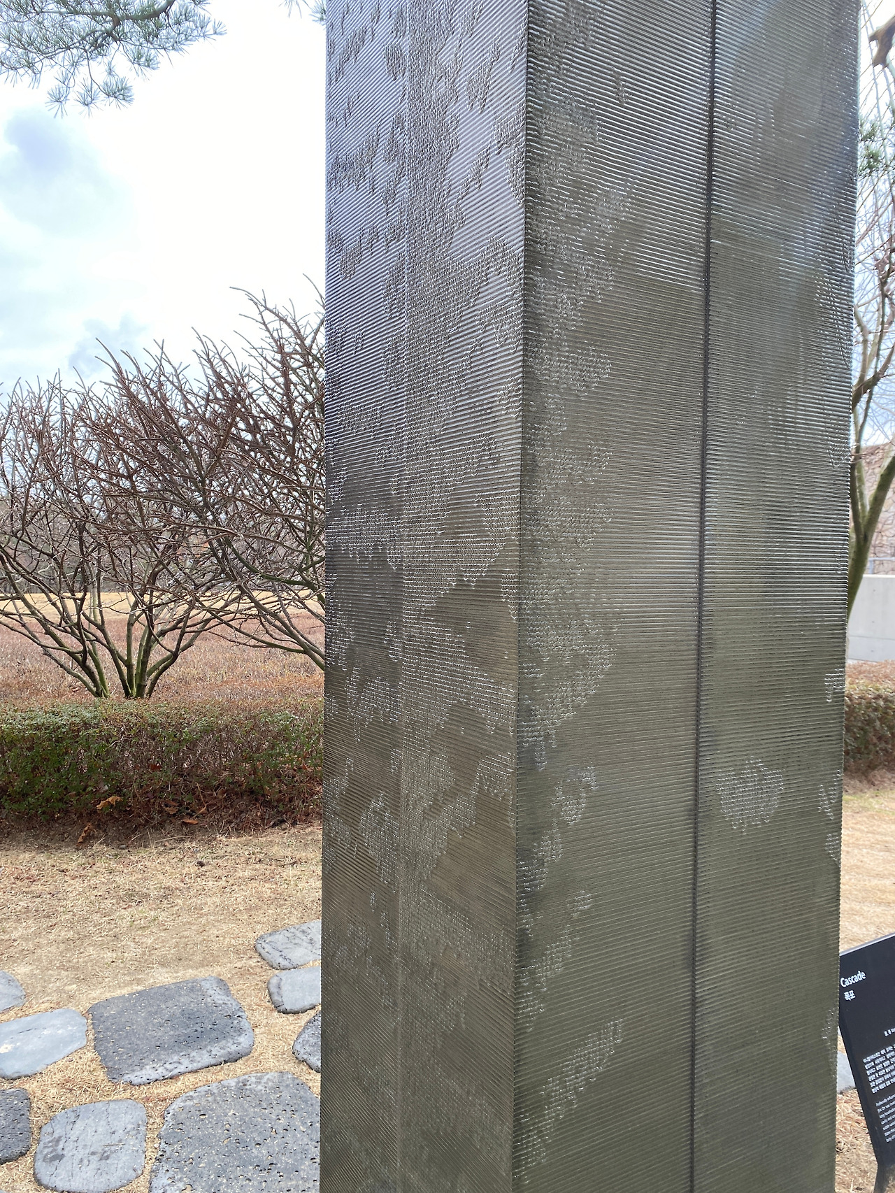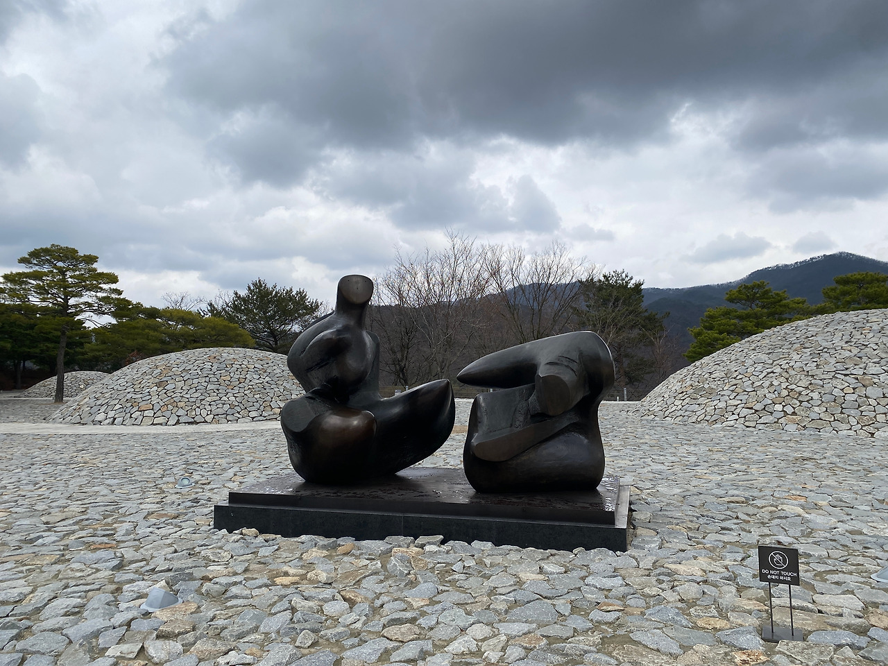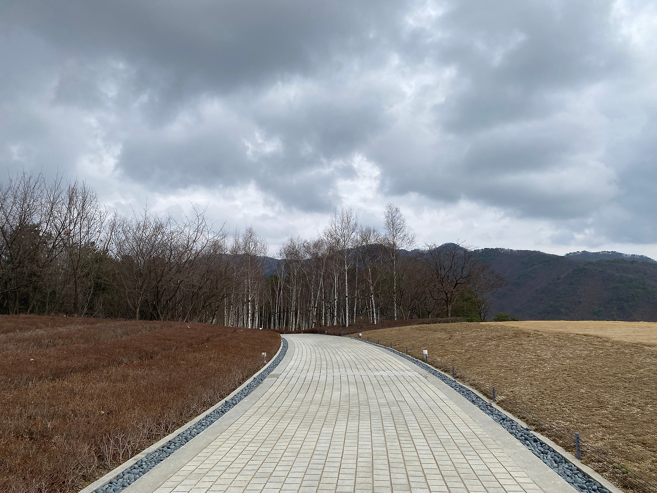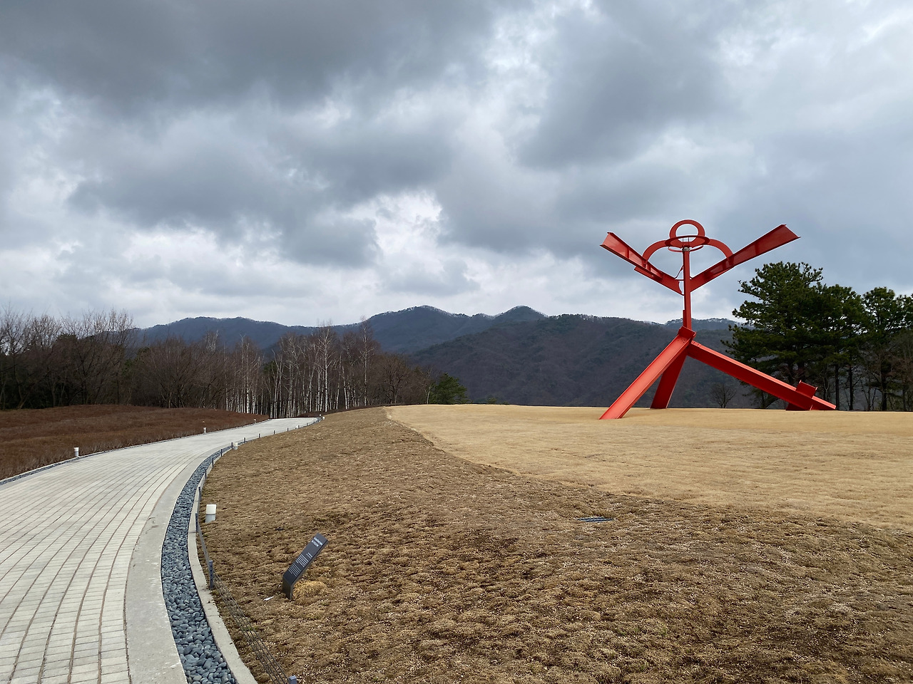 9개의 부드러운 곡선의 스톤마운드를 따라 걸으면 다양한 조각 작품과 나무, 꽃들을 구경할 수 있다. 생김새가 특이했던 화살나무와 바위틈에서 생명을 피워내던 풀, 그리고 매실나무 봉오리까지! 지금은 매실나무 꽃도 거의 다 진 상황이었지만 이때는 곧 피우려고 준비하던 중이었다.