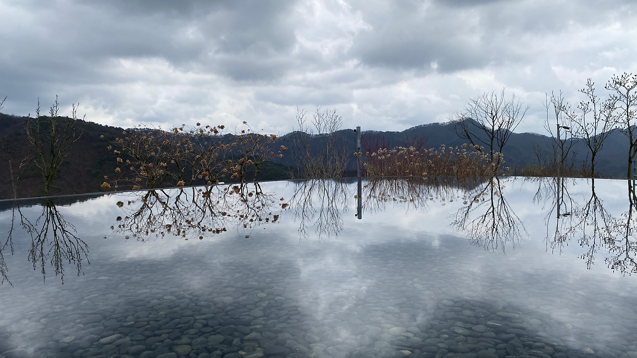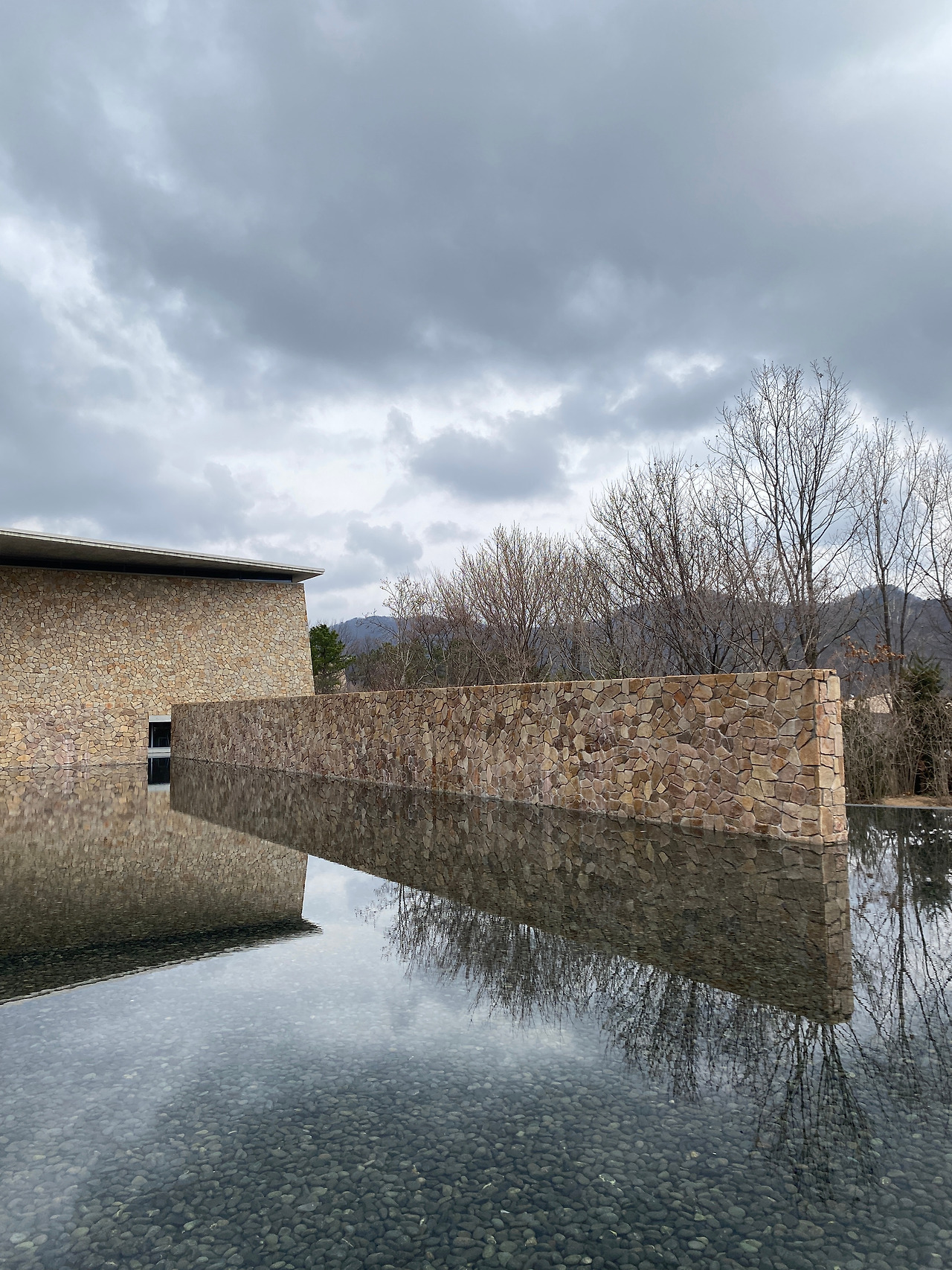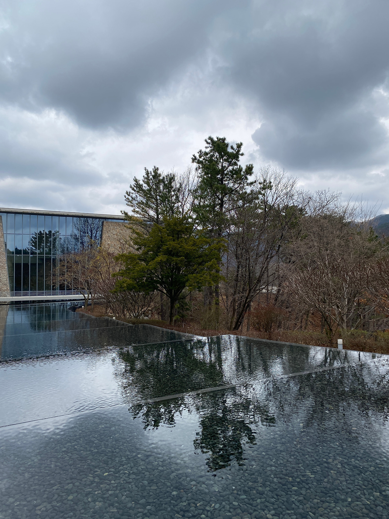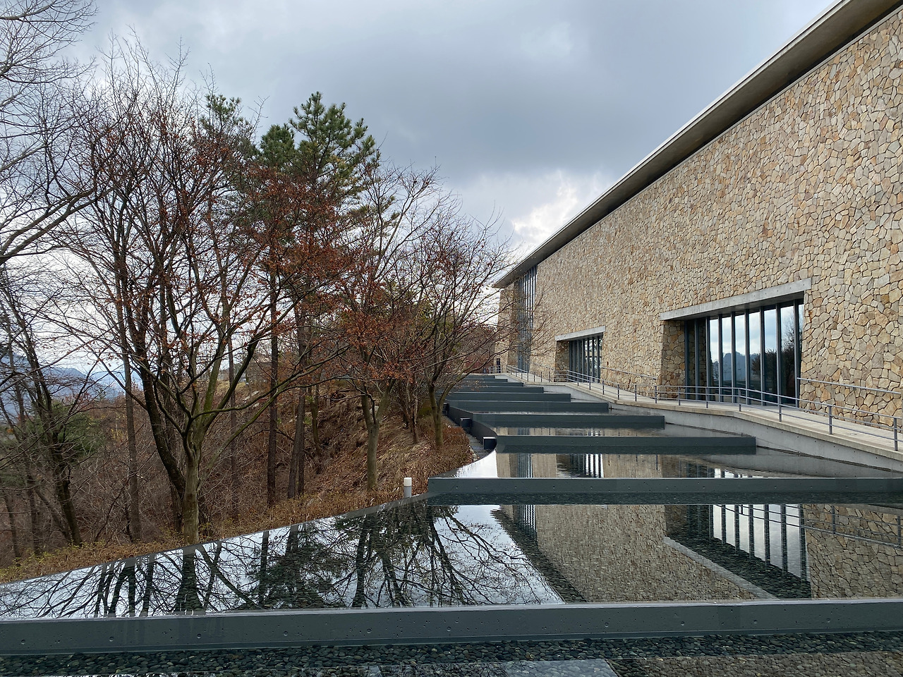 뮤지엄산이 건축가 안도 타다오가 설계했다기에 건축에 대해 많은 기대를 품고 갔다. 이 장면만 봐도 너무나 만족스러웠다. 안도 타다오가 도시의 번잡함으로부터 벗어난 아름다운 산과 자연으로 둘러 쌓인 아늑함’이라는 인상을 받았다는데 실제로 미술관 주변의 자연도, 미술관 안의 자연도 미술관과 잘 어울리고 평화로운 곳이었다.