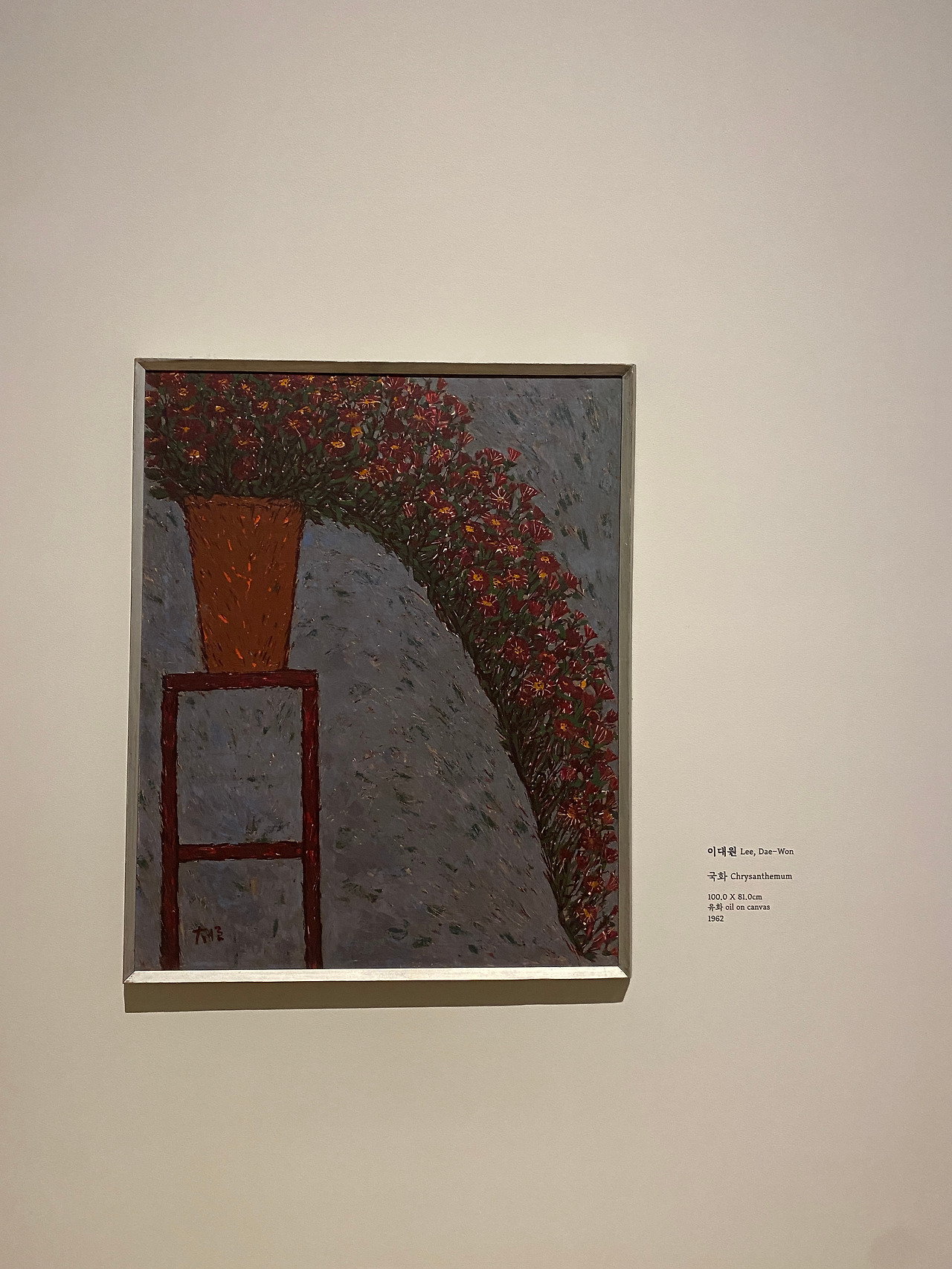 그리고 처음 들어본 작가였는데 이쾌대 작가의 작품과 이대원 작가의 작품이 좋았다. 특히 이대원 작가의 <국화>라는 작품은 의자 위에 화분이 있고 꽃이 쏟아져내리는 구도라서 더 마음에 들었던 것 같다. 나는 처음 보는 구도의 꽃 그림이었다.